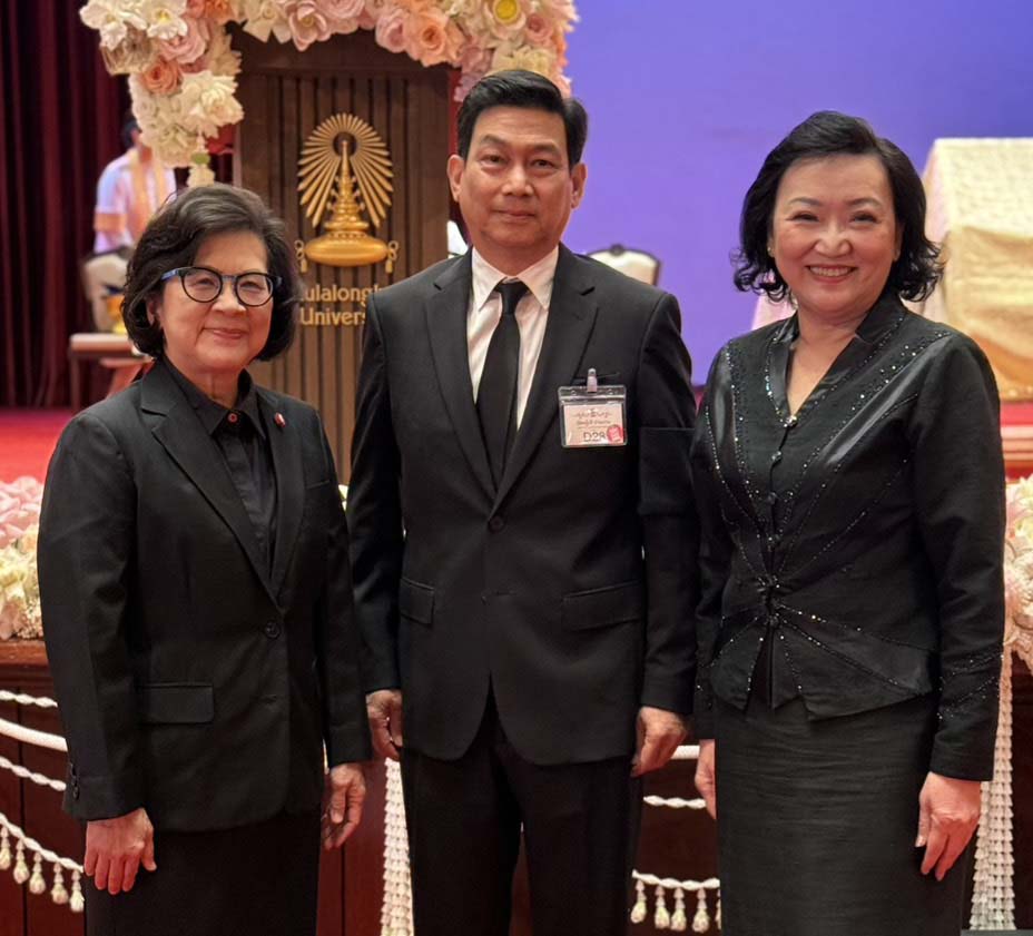 พล.ต.ท.รักษ์จิต หม้อมงคล กรรมการสภาจุฬาฯ พร้อมด้วย 2 ผู้บริหารไทยเบฟ พลภัทร สุวรรณศร และ สุเทพ เจียมประเสริฐ