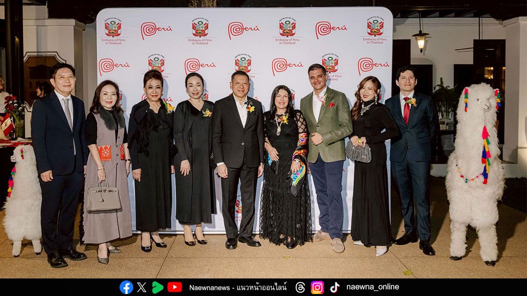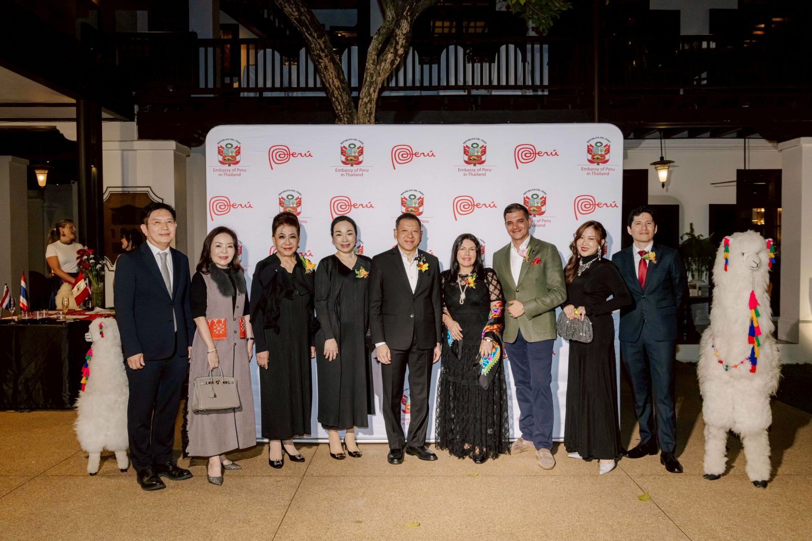 จากซ้ายไปขวา : นายพัฒนพงศ์ กู้ประเสริฐ, สุวิมล ลิ้มเล็งเลิศ, ดร.หม่อมหลวงปรียพรรณ ศรีธวัช, มาดามวีรี ฐิติปุญญา เจริญสุวรรณ, นายศรัณย์ เจริญสุวรรณ, มิสซีซิเลีย กาลาร์เร็ตต้า เอกอัครราชทูตเปรูประจำประเทศไทย, มร.อาร์โนด์ แบรีล, จุฬาลักษณ์ เศรษฐกร และ มร.มาร์ติน อบาร์กา