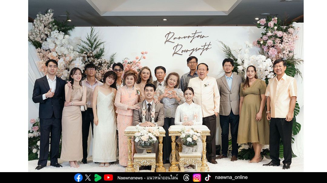 อีกหนึ่งคู่ส่งความ หวานส่งท้ายปี 2568 สำหรับพิธีมงคลสมรสระหว่าง เจ้าบ่าว เริงรัฐ น้อยใจบุญ บุตร สุรศักดิ์ –สุรีย์ภรณ์ น้อยใจบุญ และเจ้าสาวคนสวย รณัณธร จันทรักษา บุตรี ชาญกิจ –ธนิดา จันทรักษา เมื่อวันที่ 19 ธันวาคม 2568 ณ ห้องสวนหลวงแกรนด์บอลรูม โรงแรมโนโวเทล กรุงเทพ บางนา