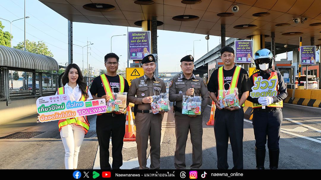 บมจ.ทางยกระดับดอนเมือง หรือ DMT นำโดย ดร.สัณห์ พันธ์อุไร ผู้ช่วยรองกรรมการผู้จัดการสายงานปฏิบัติการ และ นพพล โพธิ์ขี ผอ.ฝ่ายพัฒนาธุรกิจและกลยุทธ์เพื่อความยั่งยืน พร้อมด้วย พล.ต.ต.ดำรงศักดิ์ สว่างงาม ผบก.จร. และ พ.ต.อ.ณัฐพงษ์ เชื้อเดช รอง ผบก.จร. ให้เกียรติร่วมมอบกระเป๋ากันง่วง “เที่ยวปีใหม่ทั่วไทย ปลอดภัยไปกับโทล์ลเวย์” กับทีม DMT เพื่อแทนความห่วงใยและร่วมรณรงค์ขับขี่อย่างมีวินัย เพื่อความปลอดภัยในการใช้รถใช้ถนนอย่างยั่งยืน ณ ด่านดินแดง 1 ทางยกระดับอุตราภิมุข