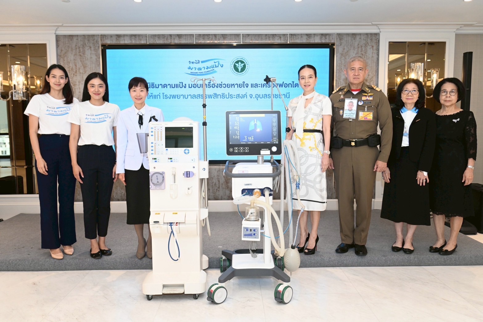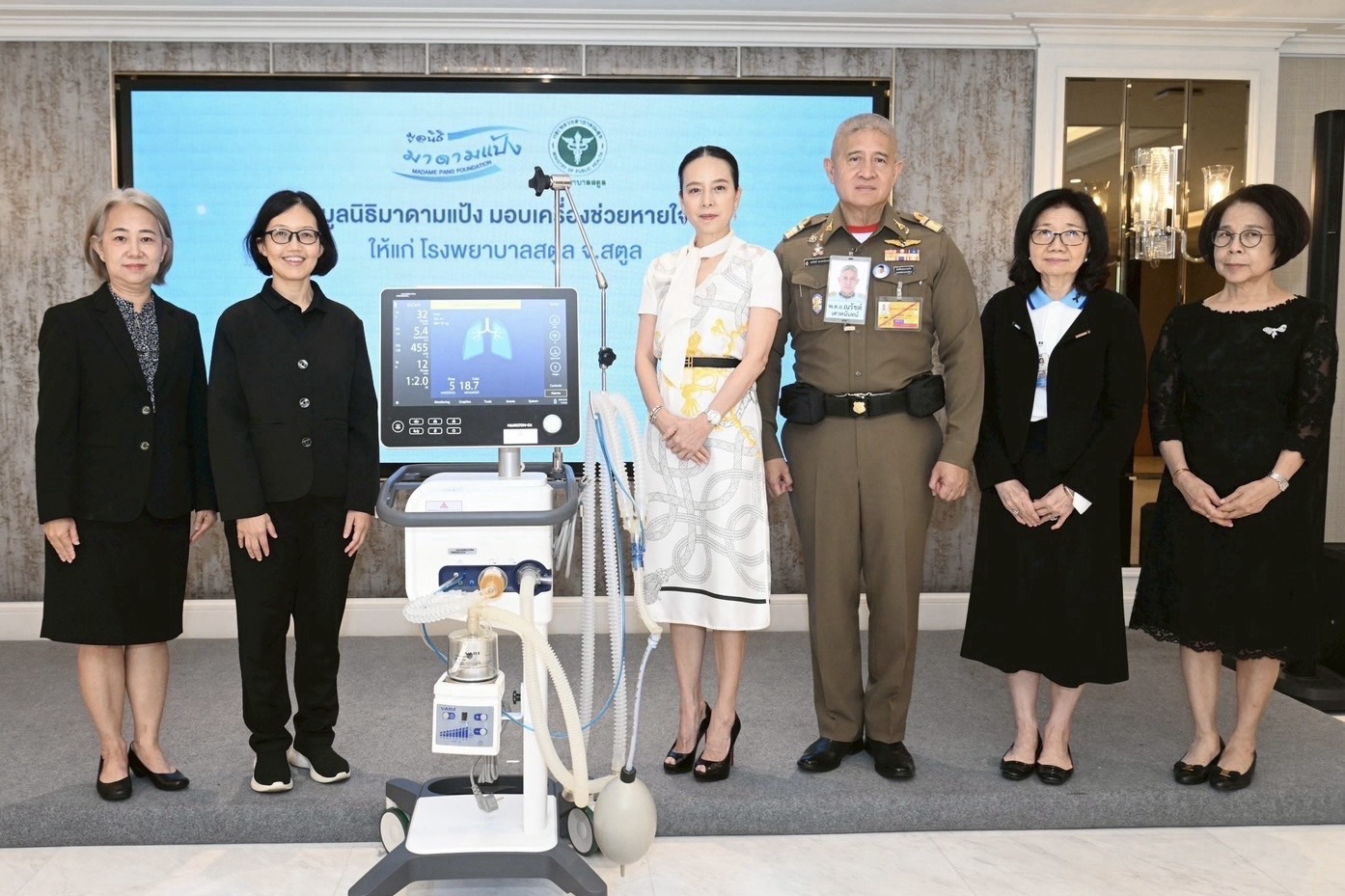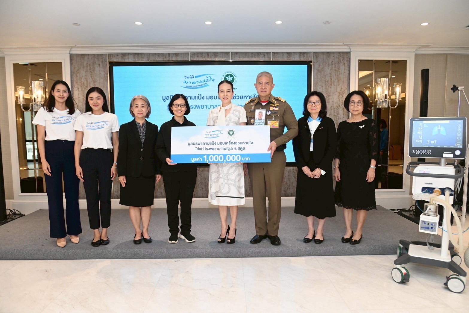 โดยได้มอบเครื่องช่วยหายใจอัจฉริยะ สำหรับห้องไอซียู ยี่ห้อ HAMILTON MEDICAL รุ่น HAMILTON-C6 มูลค่า 1,000,000 บาท ให้แก่โรงพยาบาลสตูล จ.สตูล โดยมี นางสาวสุดารัตน์ นาคบรรพต แพทย์ชำนาญพิเศษ รองผู้อำนวยการฝ่ายการแพทย์ รพ.สตูล และ มอบเครื่องช่วยหายใจพร้อมด้วยเครื่องฟอกไต มูลค่ารวม 1,450,000 บาท แก่โรงพยาบาลสรรพสิทธิประสงค์ จ.อุบลราชธานี โดยมีแพทย์หญิงกันตินันท์ มหาสุวีระชัย ผู้อำนวยการ รพ.สรรพสิทธิประสงค์ เป็นผู้รับมอบ