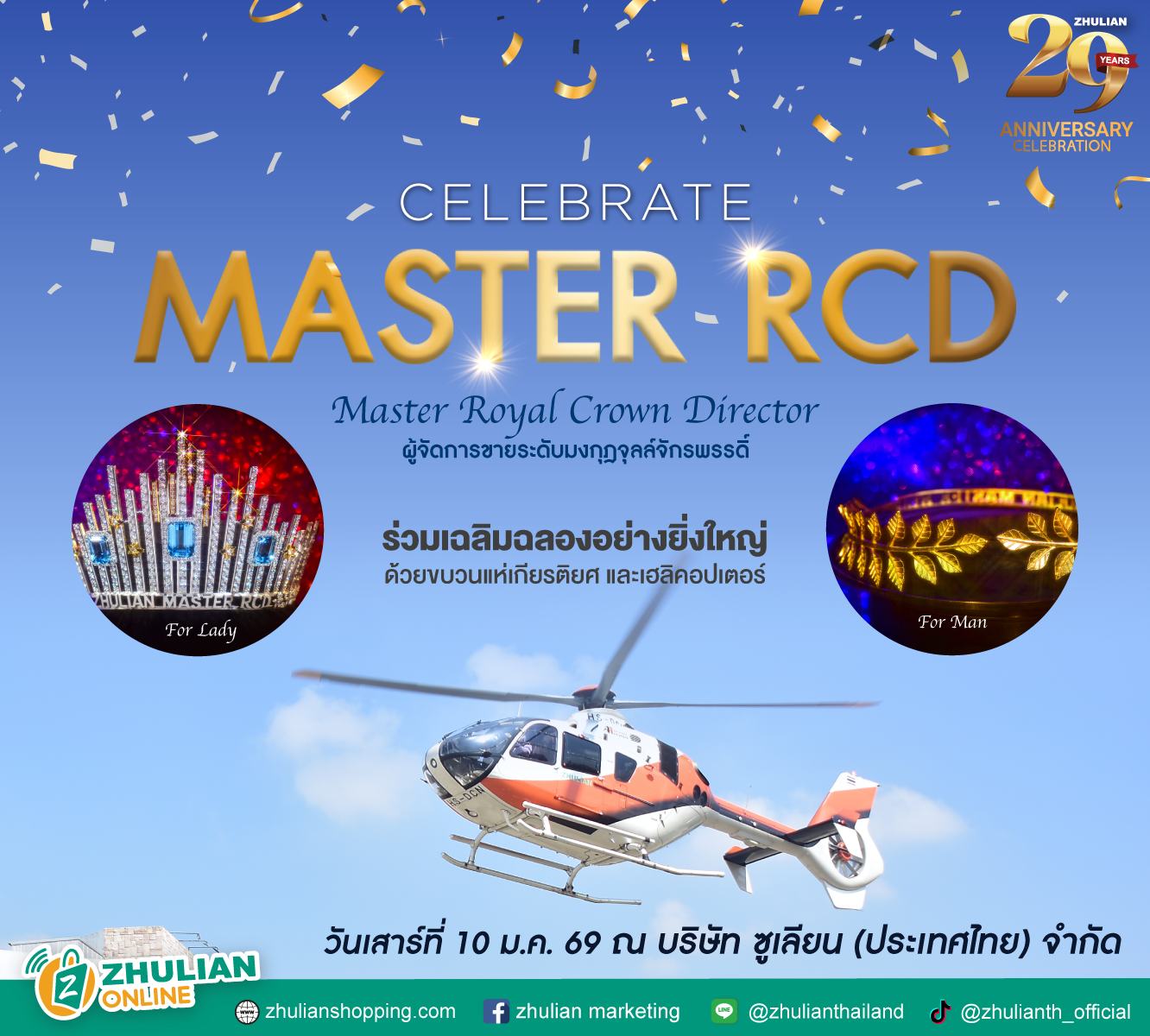 บริษัท ซูเลียน (ประเทศไทย) จำกัด ตอกย้ำความแข็งแกร่งขององค์กรชั้นนำ ในวาระครบรอบ 29 ปีแห่งการเติบโตอย่างมั่นคง จัดงานเฉลิมฉลองอย่างยิ่งใหญ่ภายใต้แนวคิด “Celebrate MASTER RCD – Master Royal Crown Director” การเปิดตัวตำแหน่งเกียรติยศสูงสุด ที่สะท้อนถึงจุดสูงสุดของความสำเร็จ ความสามารถ และภาวะผู้นำในระบบธุรกิจซูเลียนอย่างแท้จริง