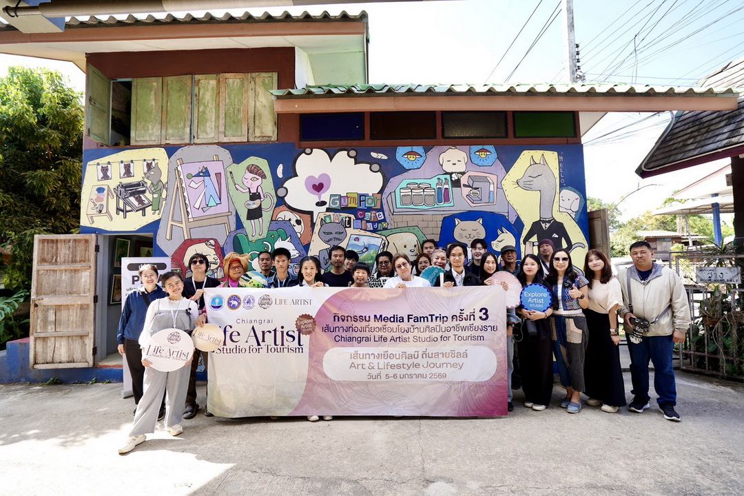 สำนักงานท่องเที่ยวและกีฬาจังหวัดเชียงราย (ทกจ.เชียงราย) จัดกิจกรรม Media FamTrip เส้นทางท่องเที่ยว เชื่อมโยง บ้านศิลปินอาชีพเชียงราย (Chiangrai Life Artist Studio for Tourism) เส้นทางที่: 3 “เยือนศิลป์ ถิ่นสายชิลล์ ” ( Art & Lifestyle Journey ) ภายใต้โครงการ Life Artists ศิลปินศิลปาชีพสร้างสรรค์เพื่อการท่องเที่ยวอย่างยั่งยืน ระหว่างวันที่ 5-6 มกราคม 2569 โดยเชื่อมโยงบ้านศิลปินอาชีพ และพื้นที่ศิลปะสำคัญของจังหวัดเชียงราย เพื่อสร้างการรับรู้ กระตุ้นการท่องเที่ยว และเพิ่มมูลค่าเศรษฐกิจสร้างสรรค์ในพื้นที่จังหวัดเชียงราย