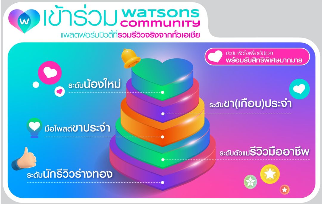 การเปิดตัว Watsons Community ครั้งนี้ ถือเป็นอีกก้าวสำคัญของวัตสันในการพัฒนาแพลตฟอร์มที่ขับเคลื่อนด้วยพลังของผู้บริโภค เปิดพื้นที่ให้สมาชิกสามารถแชร์รีวิวและแลกเปลี่ยนประสบการณ์จริง พร้อมเชื่อมต่อผู้คนจากหลากหลายประเทศทั่วเอเชียเข้าด้วยกันในคอมมูนิตี้เดียว