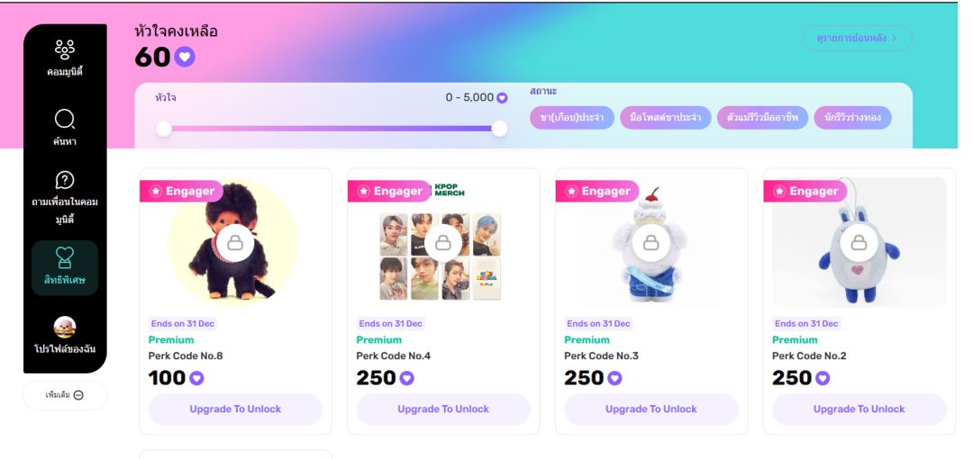 นอกจากการเป็นพื้นที่แลกเปลี่ยนรีวิวกันแล้ว Watsons Community ยังยกระดับประสบการณ์การใช้งาน ที่ออกแบบมาเพื่อกระตุ้นการมีส่วนร่วมของสมาชิก ผ่านการสะสมคะแนนและสิทธิพิเศษตามระดับ(Engagement Levels) ซึ่งแบ่งออกเป็น 5 ระดับ ได้แก่ น้องใหม่ (Newbie), ขา(เกือบ)ประจำ (Engager) , มือโพสต์ขาประจำ (Creator), ตัวแม่รีวิวมืออาชีพ (Guru) และระดับสูงสุด “นักรีวิวร่างทอง” (Leader) เพื่อสร้างแรงจูงใจ ความภาคภูมิใจ และการมีส่วนร่วมอย่างต่อเนื่องตั้งแต่ครั้งแรกที่เริ่มใช้งาน