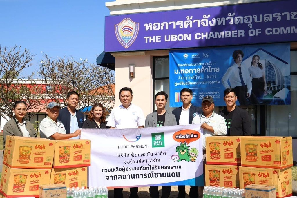 บริษัท ฟู้ดแพชชั่น จำกัด และแบรนด์ร้านอาหารในเครือ บาร์บีคิวพลาซ่า นำโดย คุณเรืองชาย สุพรรณพงศ์ ประธานบริหารสายงานปฏิบัติองค์กร บริษัท ฟู้ดแพชชั่น จำกัด พร้อมด้วย นายรัฐธนินท์ เตชะไชยสิทธิ์ ประธานหอการค้าจังหวัดอุบลราชธานี, นายวิรัตน์ เศรษฐวิพัฒนชัย ประธานหอการค้าจังหวัดสุรินทร์, นางสาวพูลทรัพย์ เทพนคร ประธานหอการค้าจังหวัดบุรีรัมย์ และพนักงานร้านบาร์บีคิวพลาซ่า ร่วมกันลงพื้นที่จังหวัดอุบลราชธานี สุรินทร์ และบุรีรัมย์ เมื่อวันที่ 6 - 7 มกราคม 2569 เพื่อส่งมอบน้ำดื่ม ข้าวสาร อาหารแห้ง และสิ่งของจำเป็น ให้แก่หน่วยทหารประจำพื้นที่ชายแดนและประชาชนที่พักพิงอยู่ในศูนย์อพยพ เพื่อบรรเทาความเดือดร้อนและร่วมส่งกำลังใจ