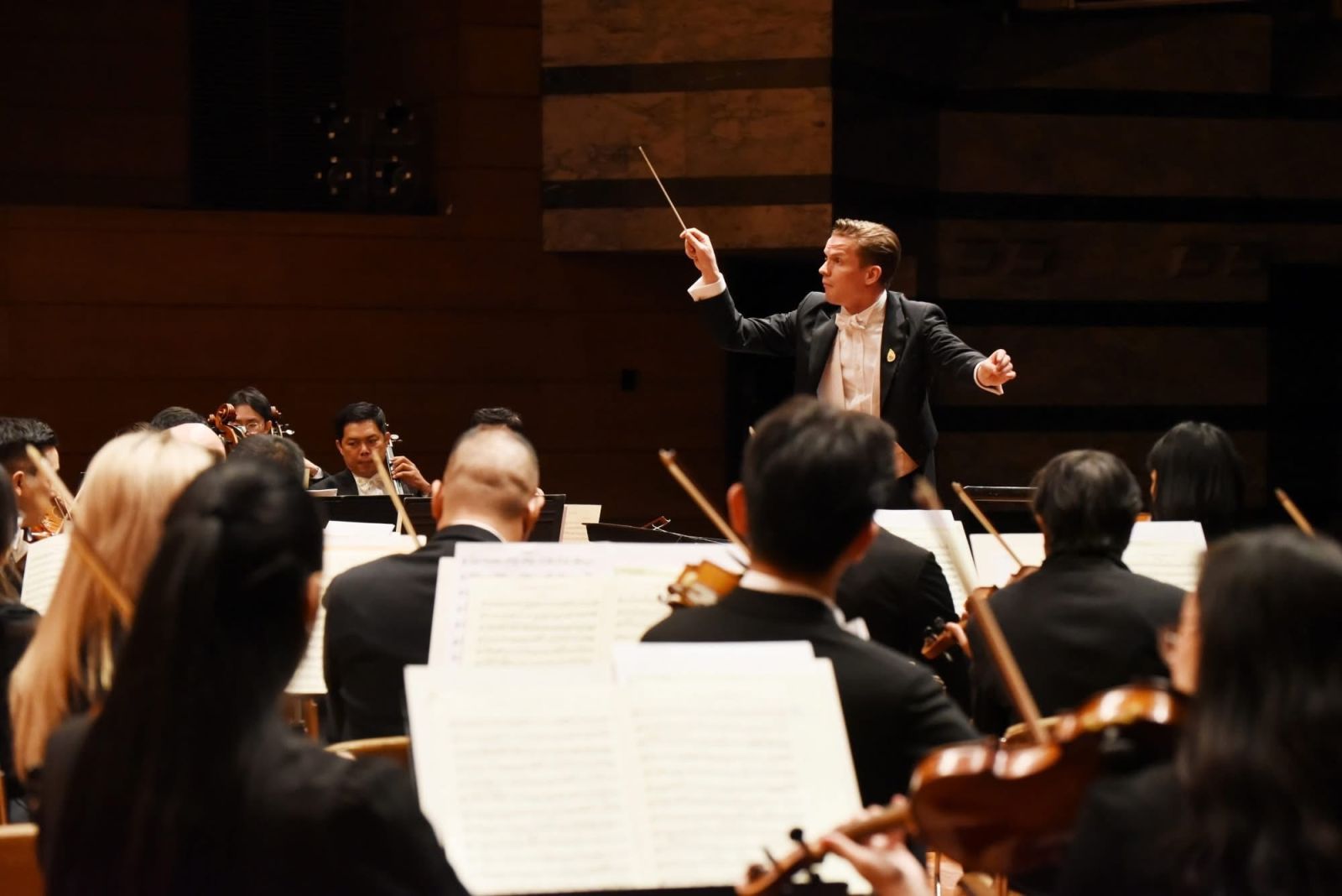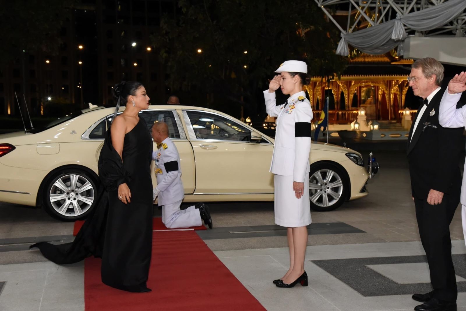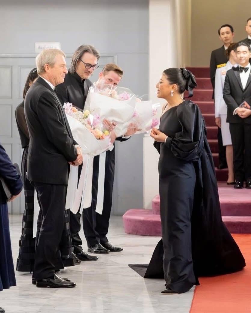 การนี้ ซาบีดา ไทยเศรษฐ์ รัฐมนตรีว่าการกระทรวงวัฒนธรรม ถวายคำกล่าวรายงาน ประสพ เรียงเงิน ปลัดกระทรวงวัฒนธรรม, ยุถิกา อิศรางกูร ณ อยุธยา อธิบดีกรมส่งเสริมวัฒนธรรม, ฮาราลด์ ลิงค์ ประธานกรรมการมูลนิธิรอยัลแบงค์คอกซิมโฟนี ออร์เคสตร้าฯ เฝ้าฯ รับเสด็จ และมี นวลพรรณ ล่ำซำ ประธานเจ้าหน้าที่บริหารเมืองไทยประกันภัย กรรมการมูลนิธิรอยัลแบงค์คอกซิมโฟนีออร์เคสตร้าฯ และฐาปณี เตชะเจริญวิกุล ประธานเจ้าหน้าที่บริหารและกรรมการผู้จัดการใหญ่ บริษัท เบอร์ลี่ ยุคเกอร์ จำกัด (มหาชน) ถวายมาลัยข้อพระกร และชริดา สังข์ทอง เลขานุการกรม กรมส่งเสริมวัฒนธรรม บันเทิง เพียรค้า ผู้อำนวยการกลุ่มค่านิยมและความเป็นไทย รักษาราชการแทนผู้อำนวยการสถาบันวัฒนธรรมศึกษา ณัฐภา จีรพรบัณฑิต ผู้อำนวยการศูนย์วัฒนธรรมแห่งประเทศไทย และชนาภรณ์ แสวงทรัพย์ ผู้อำนวยการกลุ่มเสริมสร้างสุนทรียะทางวัฒนธรรม ข้าราชการ เฝ้าฯ รับเสด็จ
