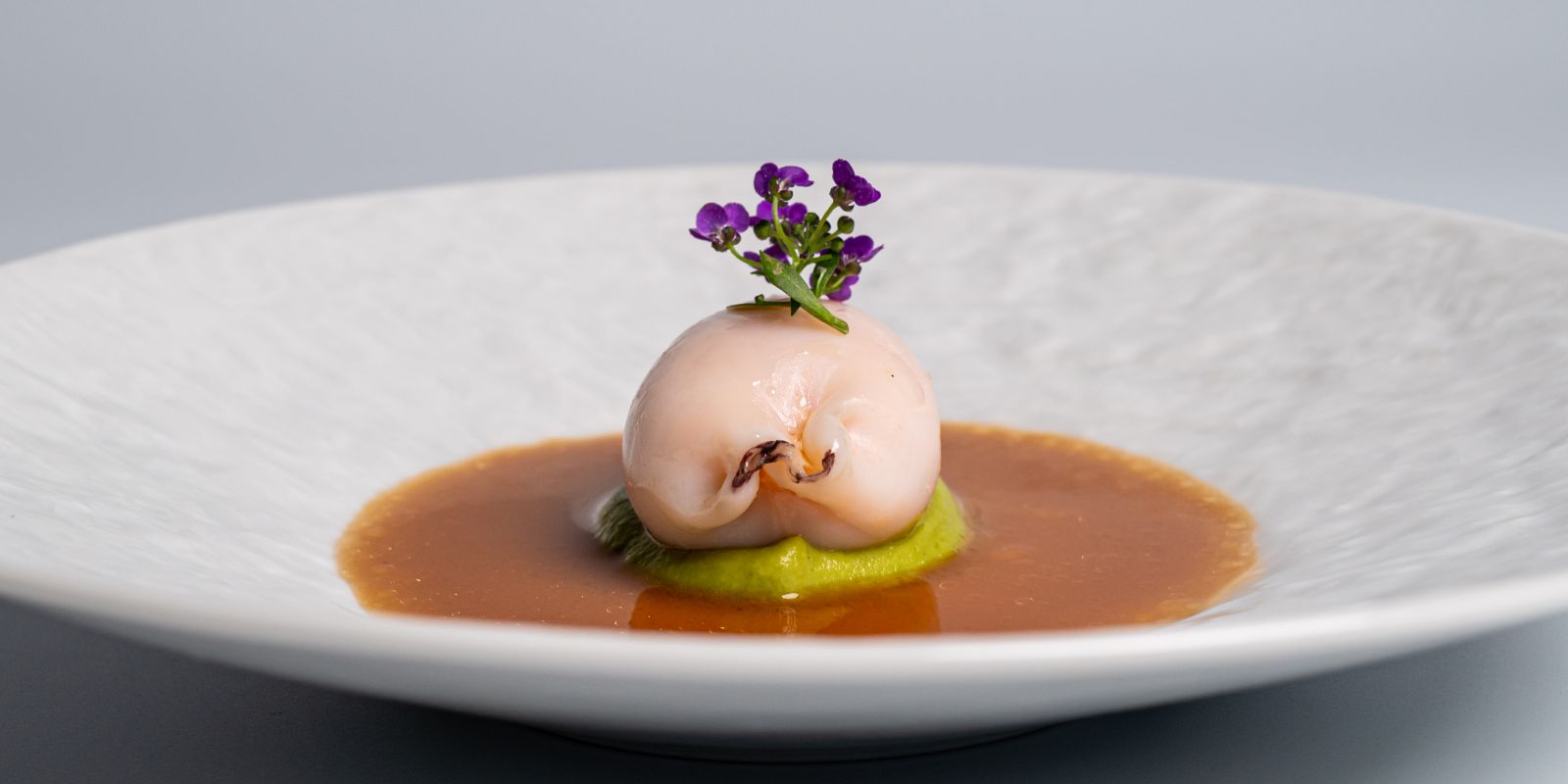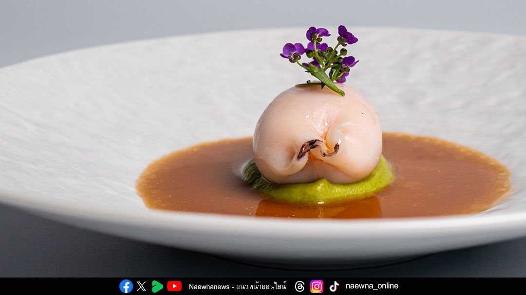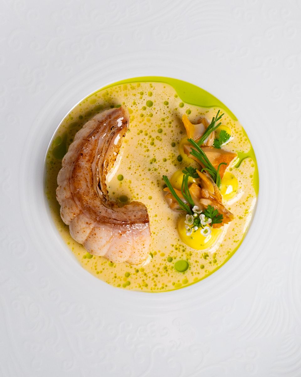 สัมผัสความลุ่มลึกของรสชาติ เริ่มต้นด้วย ‘Surume Ika’ เมนูปลาหมึกสอดไส้กุ้งหวานอามะเอบิที่ชูรสชาติวัตถุดิบอย่างโดดเด่น เพิ่มความซับซ้อนด้วยซอสเข้มข้นและพริกเอสเปอแล็ตจากฝรั่งเศส จากนั้นพาดื่มด่ำไปกับความละมุนของ ‘Topinambur Custard’ ที่มาพร้อมปลาไหลย่างและกลิ่นหอมกรุ่นของทรัฟเฟิลดำ ปิดท้ายด้วยความรื่นรมย์ของ ‘Poached Monkfish’ ที่ผสานรสสัมผัสของเห็ด Chanterelles และซอสเวลูเต้หอยตลับได้อย่างไร้ที่ติ ถ่ายทอดกลิ่นอายอันสดชื่นของลมทะเลในช่วงฤดูหนาวได้อย่างสมบูรณ์แบบ