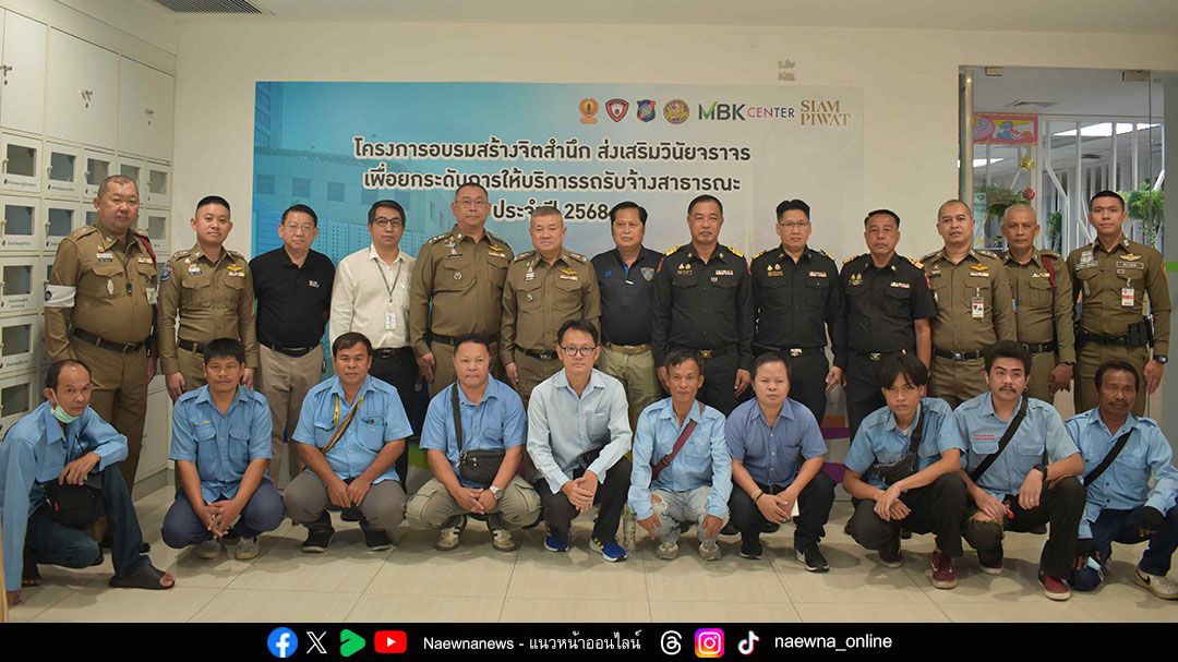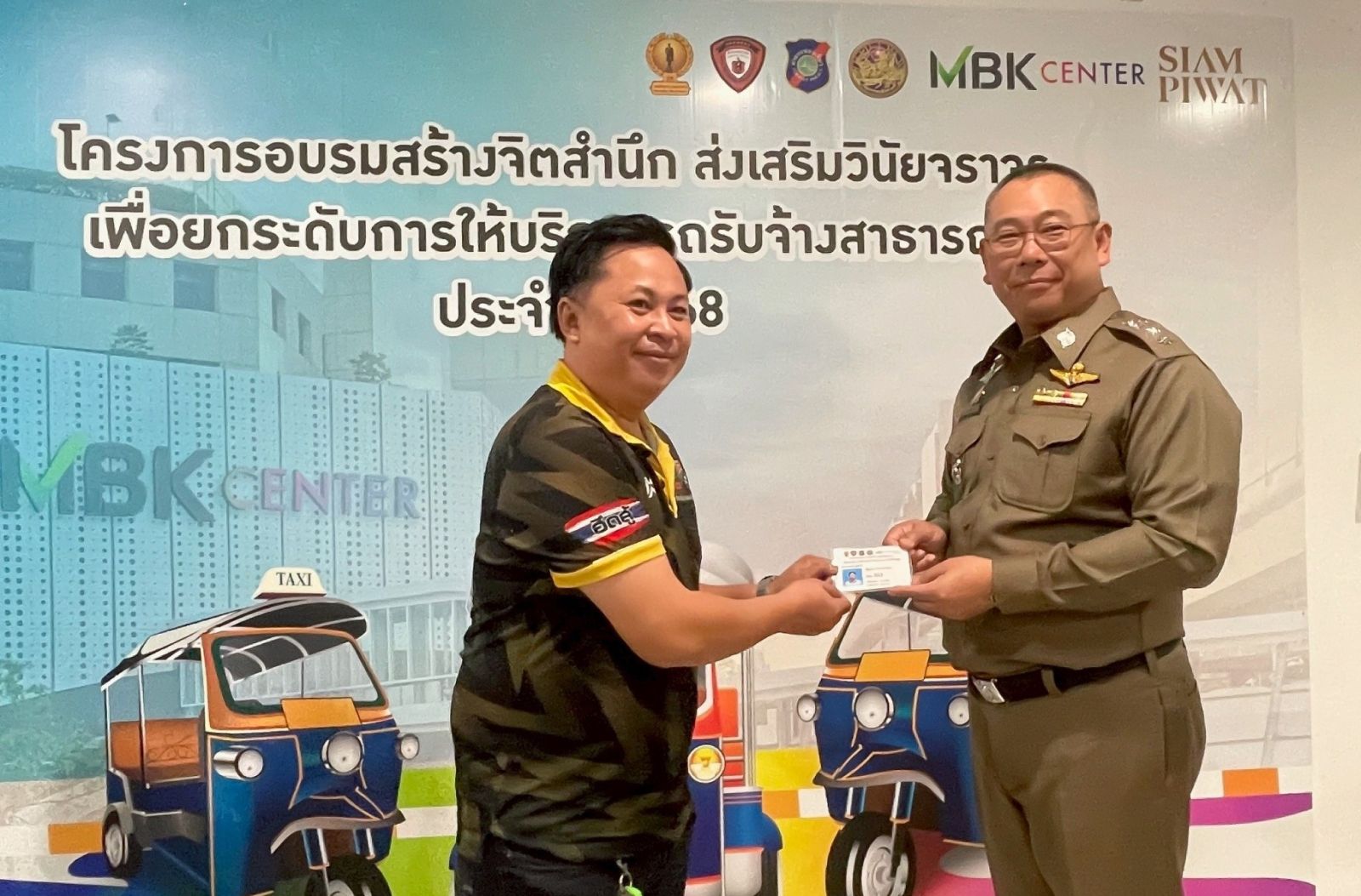 พิธีเปิดโครงการอบรมสร้างจิตสำนึก ส่งเสริมวินัยจราจร เพื่อยกระดับการให้บริการรถรับจ้างสาธารณะ ประจำปี 2568 ได้รับเกียรติจาก พล.ต.ต.ธวัช วงศ์สง่า รอง ผบช.น. เป็นประธานในพิธีเปิดการอบรม พร้อมด้วย พล.ต.ต.ชัยกฤต โพธิ์อ๊ะ ผบก.น.6, พ.ต.อ.นิติวัฒน์ แสนสิ่ง รอง ผบก.น.6, พ.ต.ท.ปฏิญญา เนียมหอม สวญ.ส.ทท.2 กก.1 บก.ทท.1 (ตำรวจท่องเที่ยว) พ.ต.ท.ยศวัฒน์ สกุลวัฒนะ ผู้แทนจากหน่วยงานกองกำกับการตำรวจจราจร และ นายจักรพันธ์ ห้องสวัสดิ์ หัวหน้าฝ่ายเปรียบเทียบ กองตรวจการขนส่งทางบก ร่วมบรรยายให้ความรู้กับผู้เข้าอบรม พร้อมตัวแทนจากศูนย์การค้าในเครือสยามพิวรรธน์ร่วมสังเกตการณ์ โดยมี นายพงศ์วิกรานต์ วิศรุตโชติกุล ผู้อำนวยการอาวุโส บริหารความปลอดภัย บริษัท เอ็ม บี เค จำกัด (มหาชน) พร้อมด้วย นายสมสฤษฏิ์ สินหนัง ผู้ช่วยกรรมการผู้จัดการ บริหารความปลอดภัย บริษัท เอ็มบีเค เซอร์วิส โซลูชั่น จำกัด ให้การต้อนรับ