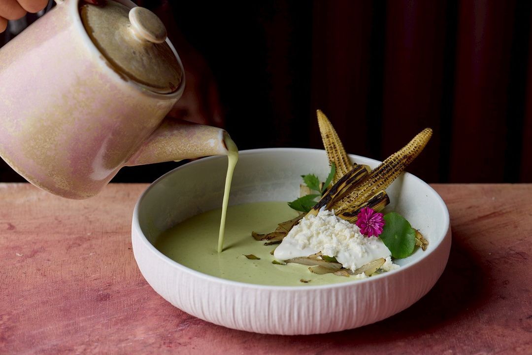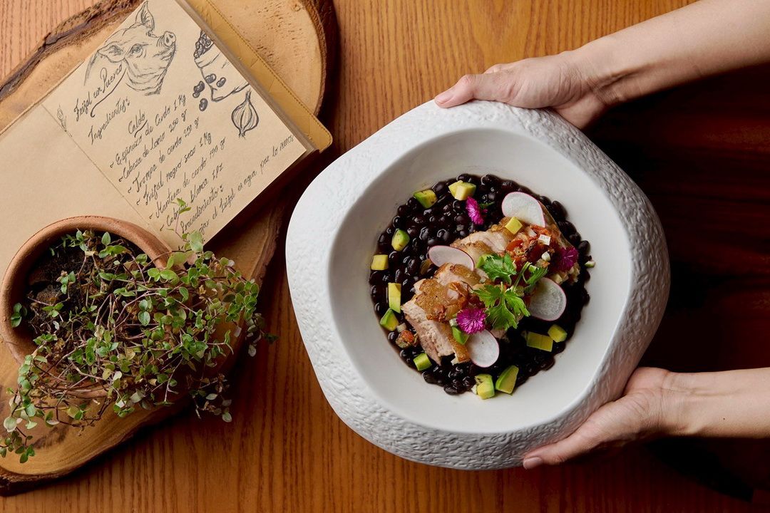 จานหลักที่แสดงถึงการผสมผสานวัฒนธรรมอย่างลงตัวคือ Pescado Zarandeado ปลากะพงทั้งตัวหมักเครื่องเทศเรคาโดเนโกร ก่อนนำไปย่างจนหอมกรุ่น เสิร์ฟคู่มากับสลัดมะละกอดิบ ข้าว และซัลซ่าหลากหลายชนิด และห้ามพลาดกับประสบการณ์อันน่าตื่นตาตื่นใจอย่าง Caldo de Piedra วิธีทำอาหารพื้นเมืองดั้งเดิมจากรัฐวาฮากา (Oaxaca) ที่สืบทอดภูมิปัญญาของชาว ชนเผ่าโบราณชินันเท็ก (Chinantec) ที่นิยมปรุงริมทะเลสาบ ซึ่งได้นำมาตีความแล้วรังสรรค์ใหม่ด้วยการปรุงซุปอาหารทะเลสด ๆ ต่อหน้านักชิม ด้วยการหย่อนหินลาวาร้อนจัดลงไปในชาม กลายซุปหินลาวารสกลมกล่อม