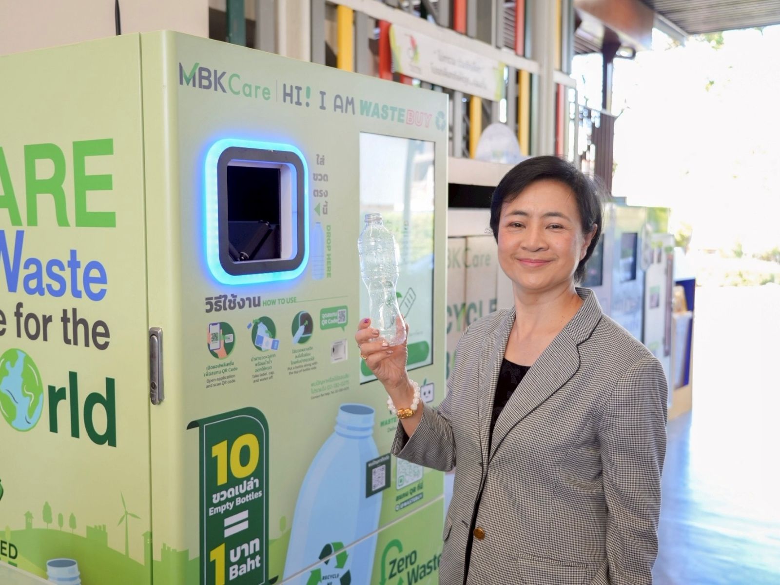 เดอะไนน์ เซ็นเตอร์ พระราม 9 ศูนย์การค้าในเครือเอ็ม บี เค สานต่อความมุ่งมั่นการดำเนินกิจการบนเส้นทางธุรกิจสีเขียว ควบคู่การใช้ทรัพยากรอย่างคุ้มค่า พร้อมส่งเสริมนวัตกรรมที่ลดผลกระทบต่อสิ่งแวดล้อม ก้าวสู่สังคมคาร์บอนต่ำและการลดการปล่อยก๊าซเรือนกระจกอย่างยั่งยืน ล่าสุดร่วมกับ บริษัท เวสท์บาย เดลิเวอรี่ จำกัด ติดตั้งตู้หยอดขวดพลาสติกอัจฉริยะHi I am Wastebuy เปลี่ยนขยะเป็นเงิน เพื่อยกระดับความร่วมมือ ส่งเสริมกระบวนการรีไซเคิลขวดเครื่องดื่มพลาสติกให้เกิดประสิทธิภาพสูงสุด โดยการเก็บกลับทรัพยากรเข้าสู่กระบวนการรีไซเคิลแบบครบวงจร