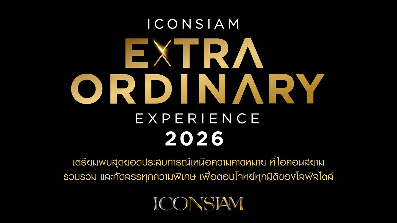 ความพิเศษทั้งหมดนี้เป็นเพียงจุดเริ่มต้นของปรากฏการณ์ที่ไอคอนสยามเตรียมพร้อมมอบให้แก่ลูกค้าตลอดทั้งปี 2569 เพื่อยืนยันถึงความตั้งใจในการยกระดับประสบการณ์การใช้ชีวิต พร้อมส่งมอบความประทับใจและความทรงจำที่ล้ำค่าให้แก่ทุกคน ไอคอนสยามพร้อมต้อนรับทุกท่านมาร่วมสัมผัสโลกแห่งประสบการณ์เหนือความคาดหมาย เพื่อก้าวสู่มิติใหม่ของการใช้ชีวิตที่แตกต่างและสมบูรณ์แบบได้ตั้งแต่วันนี้เป็นต้นไป สอบถามรายละเอียดเพิ่มเติม โทร.1338 หรือ www.iconsiam.com และ Facebook: ICONSIAM