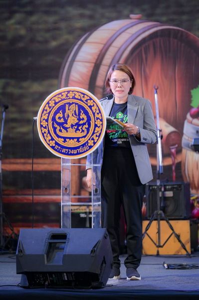 โดย นาง พิรุณวรรณ จงใจภักดิ์ พาณิชย์จังหวัดนครราชสีมา กล่าวรายงานการจัดกิจกรรม ในครั้งนี้ว่า งาน “Food & Wine Festival Celebrating Korat GI” จัดขึ้นเพื่อสานต่อนโยบายซอฟต์พาวเวอร์ของจังหวัดนครราชสีมา เพื่อขับเคลื่อนอุตสาหกรรมซอฟต์พาวเวอร์ 11 อุตสาหกรรม ได้แก่ อาหาร กีฬา ดนตรี ภาพยนตร์และซีรีส์ ท่องเที่ยว หนังสือ ศิลปะ ออกแบบ แฟชั่น เทศกาล และเกม โดยสินค้าที่ได้รับการขึ้นทะเบียน GI ในจังหวัดนครราชสีมา ปัจจุบันมีมากถึง 11 สินค้า ได้แก่ ไวน์เขาใหญ่ เส้นไหมไทยพื้นบ้านอีสาน กาแฟดงมะไฟ กาแฟวังน้ำเขียว ข้าวหอมมะลิทุ่งสัมฤทธิ์ เครื่องปั้นดินเผาด่านเกวียน มะขามเทศเพชรโนนไทย ทุเรียนปากช่องเขาใหญ่ ผ้าไหมคึมมะอุบัวลาย ผ้าไหมปักธงชัย และน้อยหน่าเพชรปากช่อง ซึ่งในงานนี้ได้รวบรวมสินค้า GI ทุกสินค้ามารวมไว้งานเดียว เพื่อเป็นการยกระดับมาตรฐานสินค้าของจังหวัด พร้อมกับการกระตุ้นการท่องเที่ยวตามนโยบายของจังหวัด