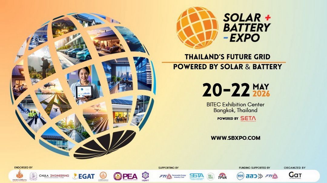 ตลาดโซลาร์บูม รับแรงส่งนโยบาย–ค่าไฟพุ่ง! SOLAR+BATTERY EXPO 2026 เปิดจองพื้นที่ มหกรรมพลังงานสะอาดครบวงจรเพื่อบ้านและโรงงาน รวมครบทุกเทคโนโลยีตั้งแต่แผง–อินเวอร์เตอร์–แบตเตอรี่–ระบบบริหารพลังงาน ใหญ่ที่สุดของปี