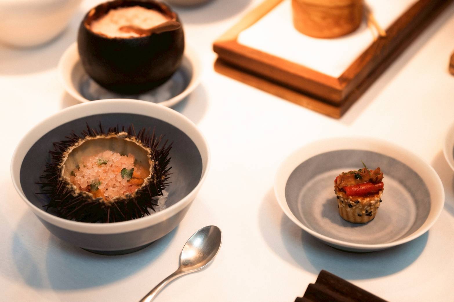 6-Hands Experience ครั้งนี้นำเสนอเป็น 6-Course Tasting Menu ที่ออกแบบขึ้นเป็นพิเศษ รังสรรค์ทุกจานผ่านบทสนทนาอันเปี่ยมความหมาย นำเสนออย่างพิถีพิถันในลำดับที่สลับกันอย่างลงตัว สะท้อนให้เห็นเอกลักษณ์อันเปล่งประกายแบบเฉพาะตัวของเชฟแต่ละท่าน ขณะเดียวกันก็ยังคงเรื่องราวที่ไหลลื่นเป็นหนึ่งเดียว เริ่มด้วย Trio of Canapés คานาเป้สามคำที่เชฟแต่ละท่านรังสรรค์ขึ้นคนละคำ ตามด้วย Amuse-Bouche ซิกเนเจอร์เมนูของ Blue และเมนูที่ใช้หอยเม่นทะเล เพื่อสะท้อนตัวตนและปรัชญาอาหารฝรั่งเศสของ Blue by Alain Ducasse