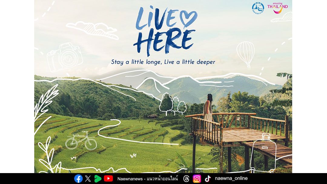 การท่องเที่ยวแห่งประเทศไทย (ททท.) ตลาดในประเทศ เดินหน้าขับเคลื่อนการท่องเที่ยวไทย เปิดตัวแคมเปญ “LIVE HERE” Stay a little longer, Live a little deeper อยู่ต่ออีกนิด.. ใช้ชีวิตให้ลึกซึ้งกว่าเดิม มุ่งเฟ้นหาแหล่งท่องเที่ยวที่ซ่อนอยู่ (Hidden Destinations) และเรื่องราวที่ยังไม่ถูกเล่า (New Story) จากทั่วประเทศไทย ภายใต้ยุทธศาสตร์การท่องเที่ยวปี 2569 ที่มุ่งเน้นการสร้างมูลค่ามากกว่าปริมาณ หรือ Value Over Volume เพื่อยกระดับการท่องเที่ยวไทยสู่ประสบการณ์ที่มีความหมายและทรงคุณค่าอย่างยั่งยืน