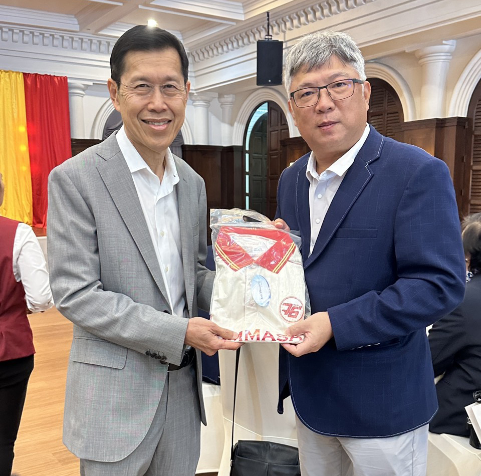 พงศ์เทพ เทพกาญจนา นายกสมาคมธรรมศาสตร์ฯ มอบของที่ระลึกแก่ตัวแทนนักกอล์ฟไทเป เทค