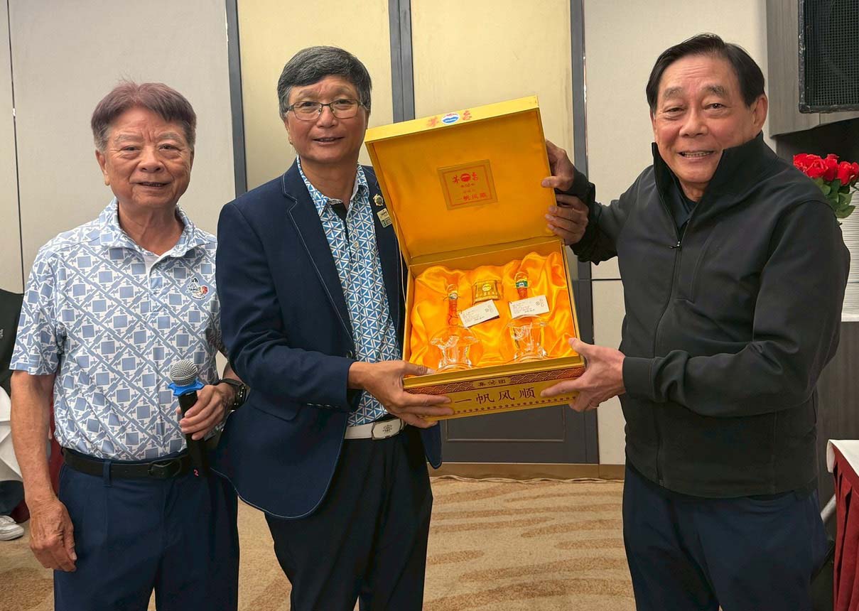 ตัวแทนนักกีฬากอล์ฟไทเป เทค มอบของที่ระลึกแก่ พิชัย ชุณหวชิร มี จำกัดธิต ศิริพูนทรัพย์ ร่วมด้วย