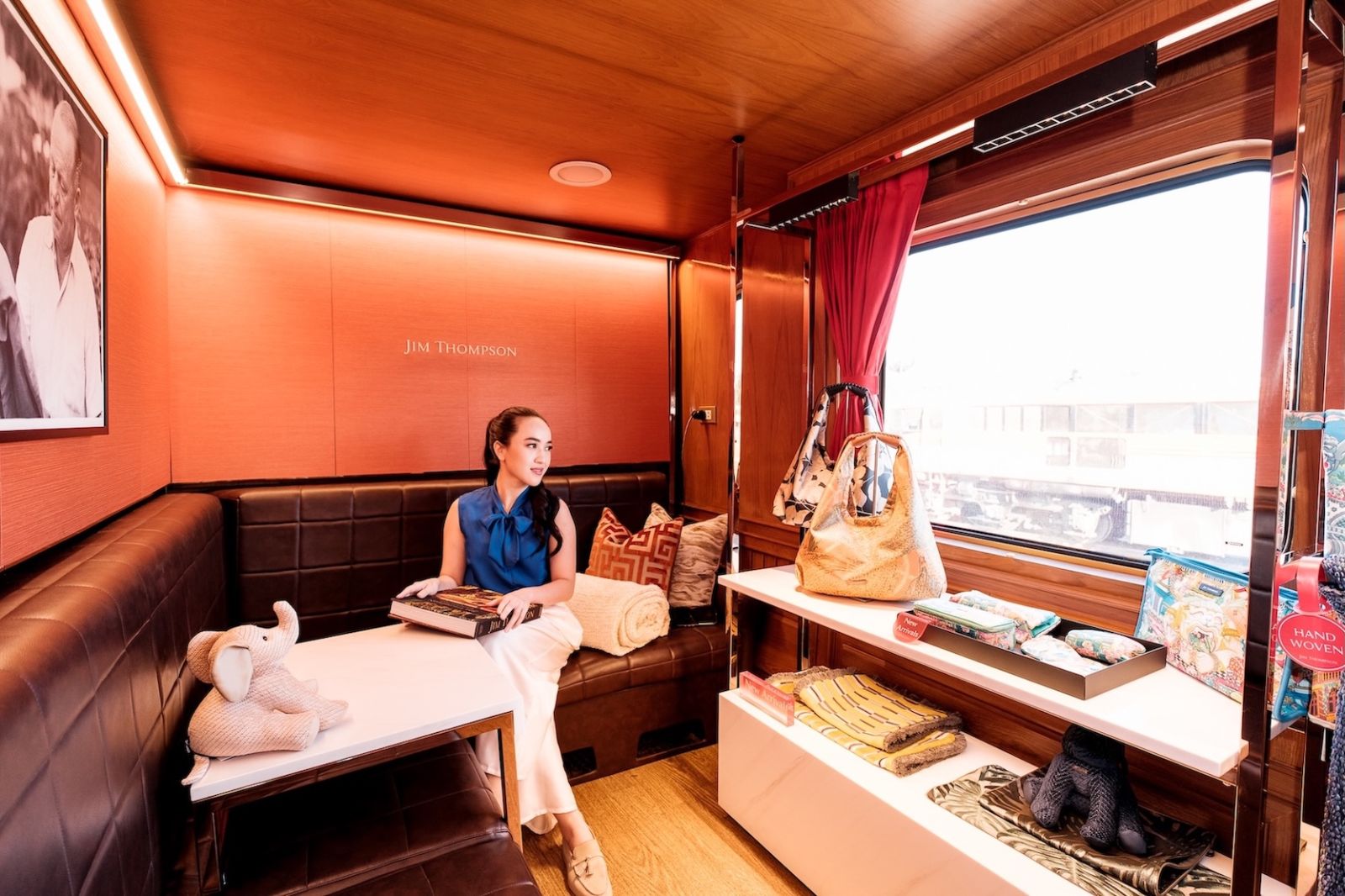 อีกหนึ่งไฮไลต์ที่พลาดไม่ได้คือโชว์รูม จิม ทอมป์สัน บนขบวนรถไฟแห่งแรกของแบรนด์ ที่นำเสนอสินค้าผ้าไหมสุดไอคอนิก รวมไปถึงคอลเลกชันแฟชั่นและไลฟ์สไตล์ที่คัดสรรมาเป็นพิเศษ พร้อมให้ทุกคนช้อปสะดวกผ่านการสแกนคิวอาร์โค้ดเพื่อสั่งซื้อออนไลน์ และจัดส่งตรงถึงที่บ้านเมื่อสิ้นสุดทริป