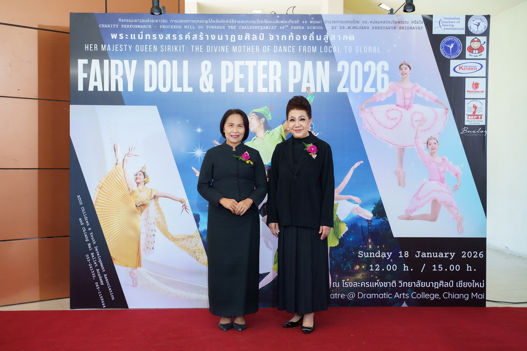 ดร.หม่อมหลวงปรียพรรณ ศรีธวัช นายกสมาคมเอทีโอดีเพื่อพัฒนาเด็กและเยาวชน จัดการแสดงระบำการกุศลชุดพิเศษ “พระแม่ทรงสรรค์สร้างนาฏยศิลป์ จากท้องถิ่นสู่สากล เรื่อง ตุ๊กตานางฟ้า และ ปีเตอร์แพน 2026” เพื่อระดมทุนสนับสนุนเยาวชนขาดโอกาสทางการศึกษาและศิลปะการแสดง ณ โรงละครแห่งชาติ วิทยาลัยนาฏศิลปเชียงใหม่ จังหวัดเชียงใหม่