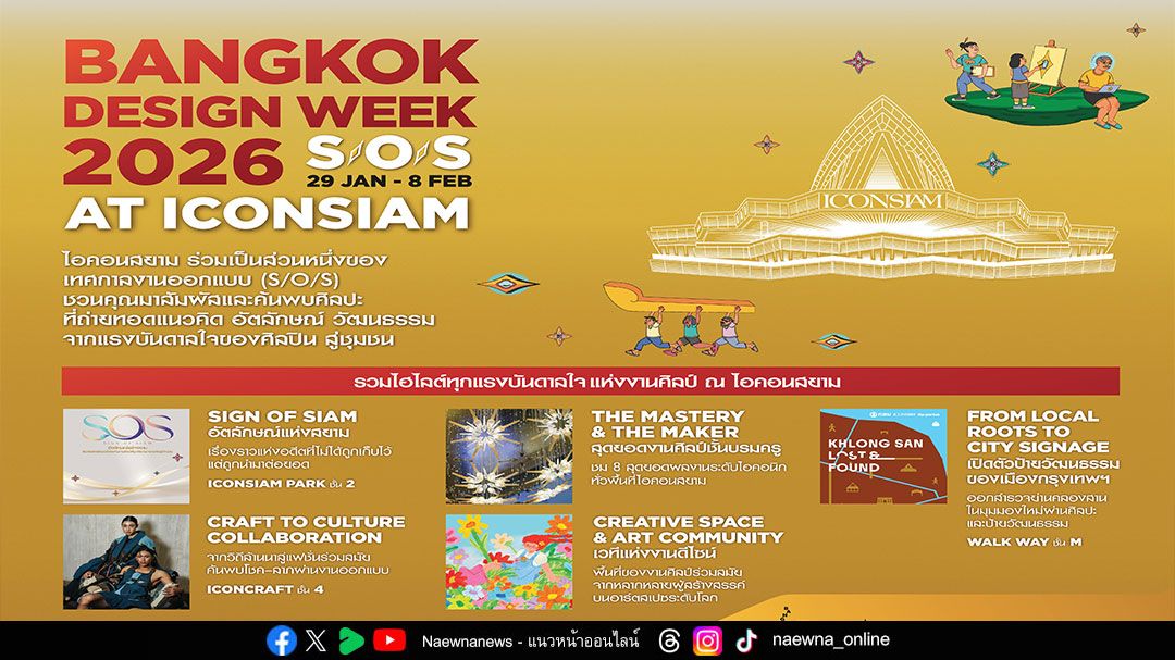 ไอคอนสยาม แลนด์มาร์กระดับโลกริมแม่น้ำเจ้าพระยา หนึ่งในพื้นที่จัดแสดงผลงานสร้างสรรค์และการออกแบบของกลุ่มบริษัทสยามพิววรธน์ ใน Bangkok Design Week 2026 ได้ร่วมกับกรุงเทพมหานครและเครือข่ายพันธมิตร เดินหน้าสร้างประสบการณ์เหนือระดับ เป็น Global Experiential Destination ขับเคลื่อนพลังความคิดสร้างสรรค์ภายใต้แนวคิด DESIGN S/O/S: Secure Domestic / Outreach Opportunities / Sustainable Future เปิดพื้นที่แห่งแรงบันดาลใจ ที่ผสานงานออกแบบ ศิลปะ วัฒนธรรม ชุมชน และความยั่งยืน เข้าไว้ด้วยกันในหลากหลายมิติ ถ่ายทอดอัตลักษณ์ของย่านริมแม่น้ำเจ้าพระยาที่เปี่ยมด้วยเรื่องราว ผ่านประสบการณ์สร้างสรรค์ที่เข้าถึงได้สำหรับทุกคน