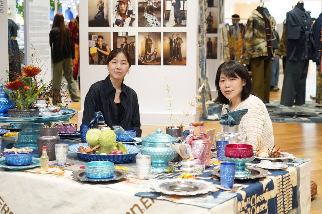 นอกจากนี้นิทรรศการ “ICONCRAFT X PATTERN.ERS CHOKE-LARB POP UP EXHIBITION” ยังร่วมด้วยแบรนด์ “SUCHAI CRAFT” ผู้รังสรรค์ภาชนะอลูมิเนียมลายไทยมานานกว่า 50 ปี ที่พลิกโฉมให้เข้ากับยุคสมัยด้วยการเพิ่มสีสันให้หลากหลาย พร้อมนำเสนอการใช้งานในรูปแบบใหม่ ๆ เปลี่ยนภาพจำของผลิตภัณฑ์อลูมิเนียมลายไทย ให้เป็นของที่ใคร ๆ ก็หยิบมาใช้ได้อย่างร่วมสมัย โดยนำเสนอผลงานชุด “เลิศ ลาภ” ที่หยิบเอาสีสันอันเป็นจุดเด่นของแบรนด์มาเล่าผ่านเรื่องราวของสีมงคล โดย ธนัชชา และ สาริศา ตั้งสุขสว่างพร สองทายาทแบรนด์ SUCHAI CRAFT เล่าถึงคอลเลกชันพิเศษนี้ว่า “แนวคิดของงานครั้งนี้ พูดถึงเรื่องโชคลาภ และเนื่องจาก SUCHAI CRAFT เราโดดเด่นเรื่องสีสัน เลยอยากเอาเรื่องสีมานำเสนอเป็นสีมงคล ซึ่งเรามองว่าเรื่องสีเป็นเรื่องปัจเจก และเราสามาถสร้างความเลิศลาภของเราเองได้ ประกอบกับภาชนะอลูมินียมสีสันของเราสามารถใส่อาหารได้ เราจึงนึกถึงสีโทนสีฟ้า-น้ำเงิน ที่มักจะถูกมองว่านำมาใช้กับอาหารแล้วดูไม่น่ากิน เลยอยากนำโทนสีนี้มาผสมผสานกับนิลกาฬและเงิน นำเสนอเป็นสินค้าตกแต่งโต๊ะอาหาร อย่างถาด ชาม ขัน หรือเหยือก ที่สามารถจัดแต่งทำให้โต๊ะอาหารสวยงามหรูหราขึ้นได้ เพื่อสื่อว่า เราสามารถสร้างสีแห่งโชคลาภได้เอง ขอเพียงเป็นสีที่เรามั่นใจ และใช้ให้ถูกกาลเทศะ ก็จะเป็นสีที่แสดงความเป็น ‘เลิศ’ ซึ่งนำพาเราไปสู่ ‘ลาภ’ ได้นั่นเอง”