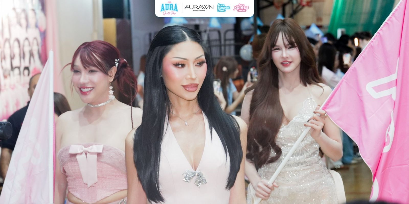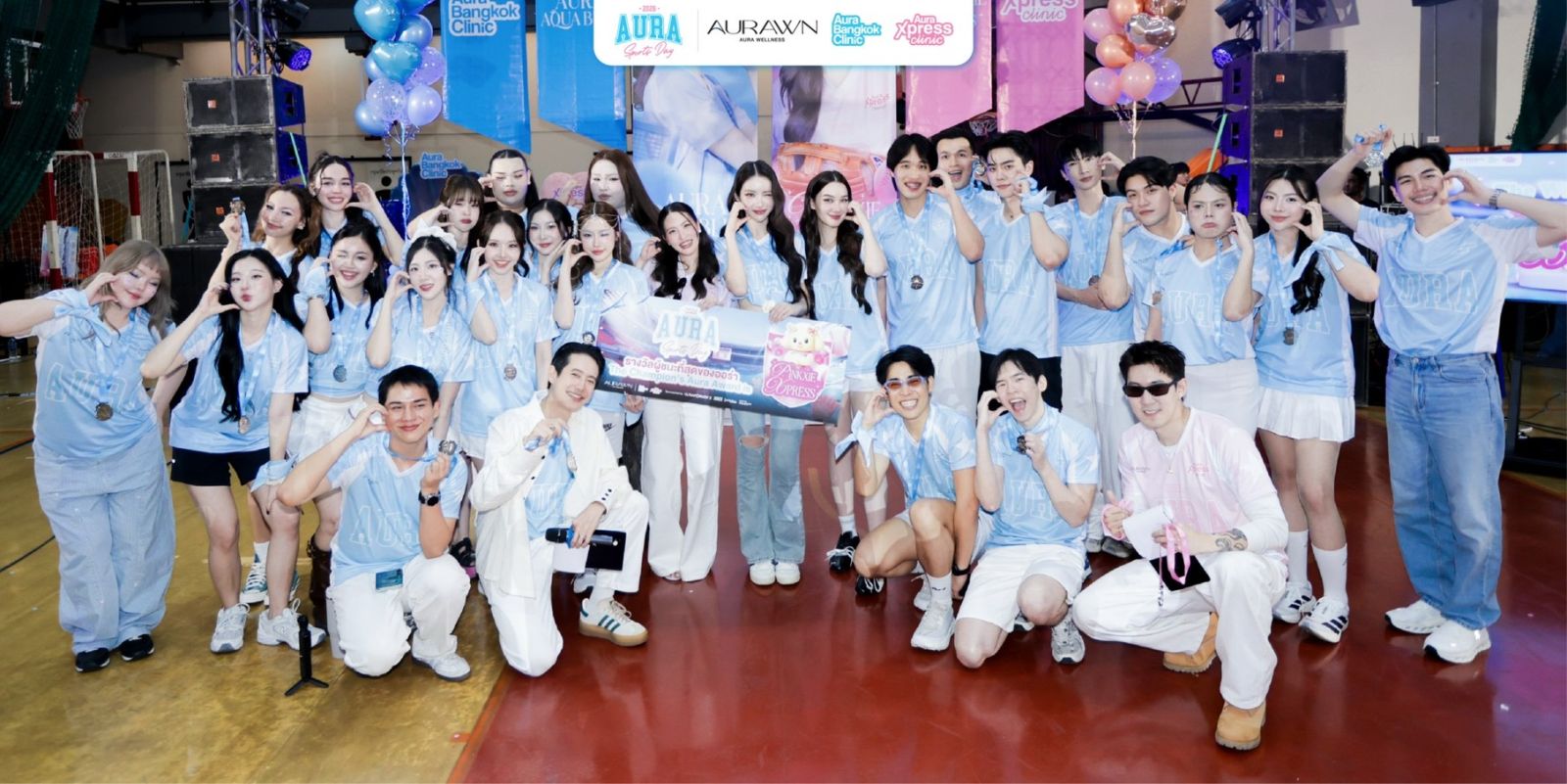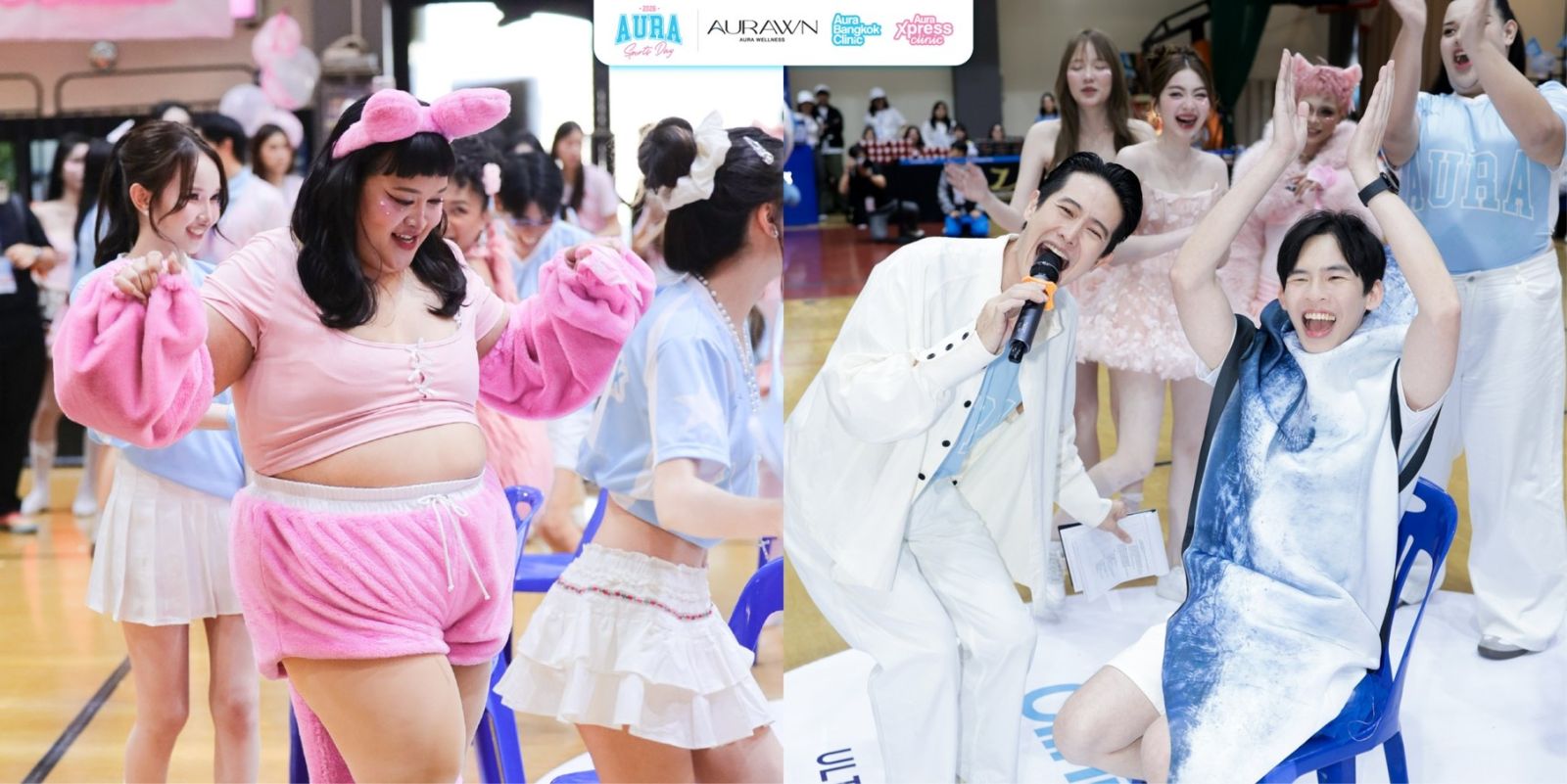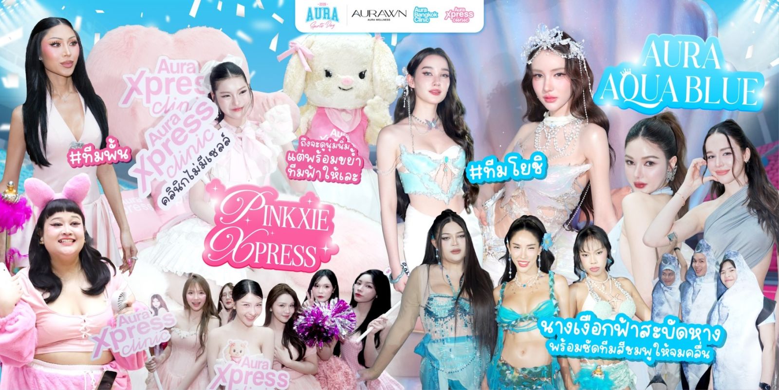 ทีมแรก สีฟ้า Aqua Blue นำทีมโดย โยชิ รินรดา ธุรพันธ์ Presenter Aura Bangkok Clinic ดวลกับ สีชมพู Pinkxie Xpress กัปตันทีมคือ พั้นรักแมว พันธิตา บุญชวน Presenter Aura Xpress Clinic พร้อมด้วยอินฟลูแถวหน้า ไอดอลตัวท็อป ยูทูปช่องดัง ทั้งสองทีมตบเท้าเข้าร่วมเดินพาเหรด อวดหน้าสวย ผิวใส และลงแข่งขันกีฬาสุดท้าทายกว่า 4 ชนิด ปิดท้ายด้วยเวทีมอบเหรียญรางวัล โดยทีมที่คว้าชัยชนะ คือทีมสีชมพู Pinkxie Xpress งานนี้คุณบรีม พรกมล เพชรดาษดา Chief Marketing Officer – Aura Bangkok Clinic & Aura Xpress Clinic มาร่วมมอบรางวัลให้กับทีมผู้ชนะในปีนี้ด้วย งานนี้ นอกจากการเชียร์กีฬามันส์ ๆ และกิจกรรมที่อัดแน่นตลอดทั้งวัน ยังมีบูทกิจกรรมจากสปอนเซอร์ทั้ง 4 เจ้า ได้แก่ Ultraformer III, Nabota, Jovelook, Picocare Majesty ให้แฟนคลับได้ร่วมสนุก ชิงรางวัลอีกมากมาย นอกจากแฟนคลับจะได้เข้างานฟรี เชียร์ทีมที่ชอบ เติมพลังด้วย Food Support จากนักล่าหมูกระทะและ Shinkanzen Sushi ยังได้ของรางวัลและของที่ระลึกจากงาน ติดไม้ติดมือกลับบ้านกันทุกคน