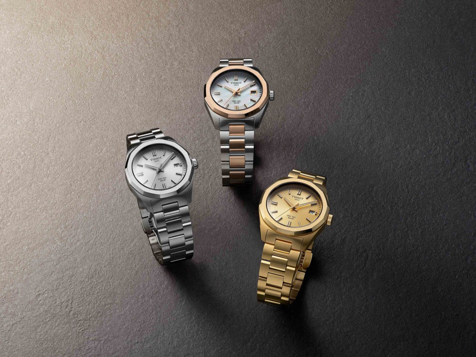 สำหรับ พีอาร์ซี 100 โซลาร์ (PRC 100 Solar) ขนาดใหม่ 34 มม. ที่เหมาะสำหรับขนาดข้อมือของผู้หญิง หรือผู้ที่มีขนาดข้อมือเล็ก โดยถูกออกแบบโฉมใหม่มา 5 รุ่นด้วยกัน ที่ยังคงเอกลักษณ์ของกรอบหน้าปัดทรงสิบสองเหลี่ยมอันโดดเด่นบนตัวเรือนสแตนเลสสตีล เริ่มตั้งแต่รุ่นตัวเรือนสองสีสแตนเลสสตีลจับคู่โรสโกลด์พร้อมหน้าปัดสีขาวมุก, รุ่นตัวเรือนสีเยลโลโกลด์ทั้งเรือนและหน้าปัดสีเดียวกันที่โดดเด่นด้วยความหรูหรา, รุ่นตัวเรือนสองสีสแตนเลสสตีลจับคู่เยลโลโกลด์กับหน้าปัดสีเงิน ไปจนถึงรุ่นตัวเรือนสแตนเลสสตีลทั้งเรือนพร้อมหน้าปัดสีเทา และรุ่นหน้าปัดสีฟ้าไอซ์บลูในตัวเรือนสแตนเลสสตีลที่ให้ลุคสดใสและร่วมสมัย