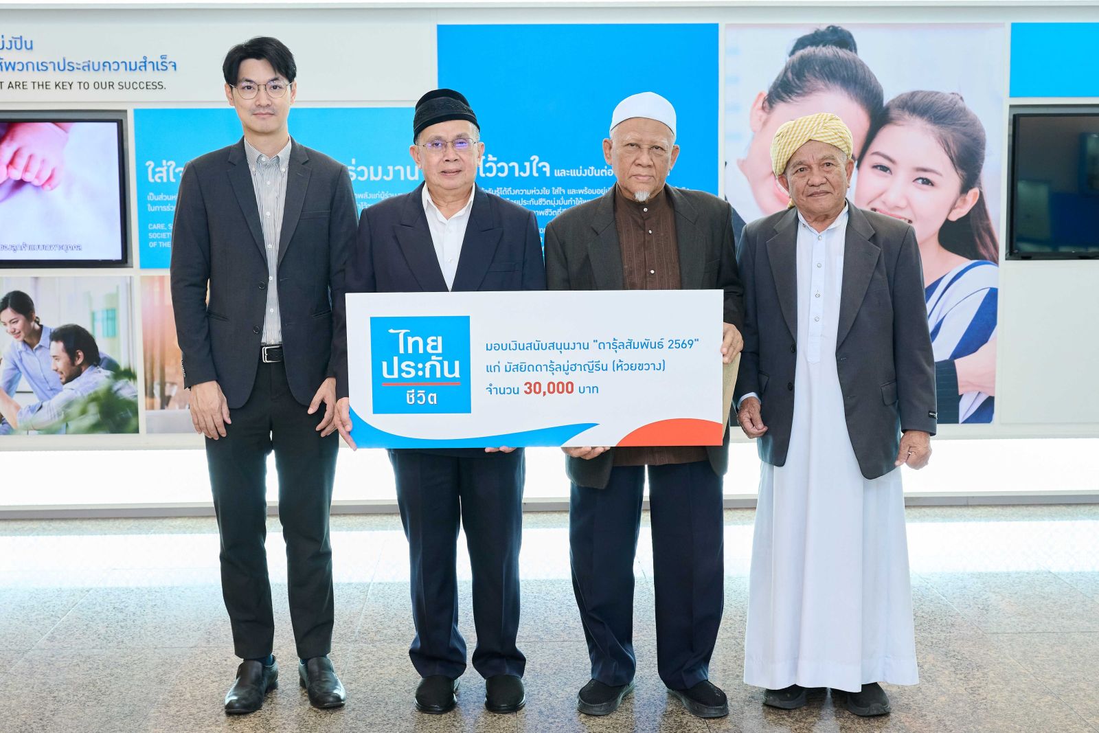 พิเชฐ เชาวน์ศิริ กรรมการชะรีอะฮ์ไทยประกันชีวิตตะกาฟุล ผู้แทนบริษัท ไทยประกันชีวิต จำกัด (มหาชน) มอบเงินจำนวน 30,000 บาท แก่ ฮัจยีประดิษฐ มิ่งสมร อิหม่ามประจำมัสยิดดารุ้ลมู่ฮาญีรีน (ห้วยขวาง) เพื่อสนับสนุนกิจกรรมของมัสยิด ในงานดื่มน้ำชาการกุศล “ดารุ้ลสัมพันธ์ 2569” ซึ่งเป็นงานพบปะสังสรรค์ของชาวมุสลิมจากมัสยิดต่าง ๆ ในกรุงเทพฯ และจังหวัดใกล้เคียง เพื่อสร้างความสัมพันธ์อันดีกับชุมชนพื้นที่ใกล้เคียงบริษัทฯ