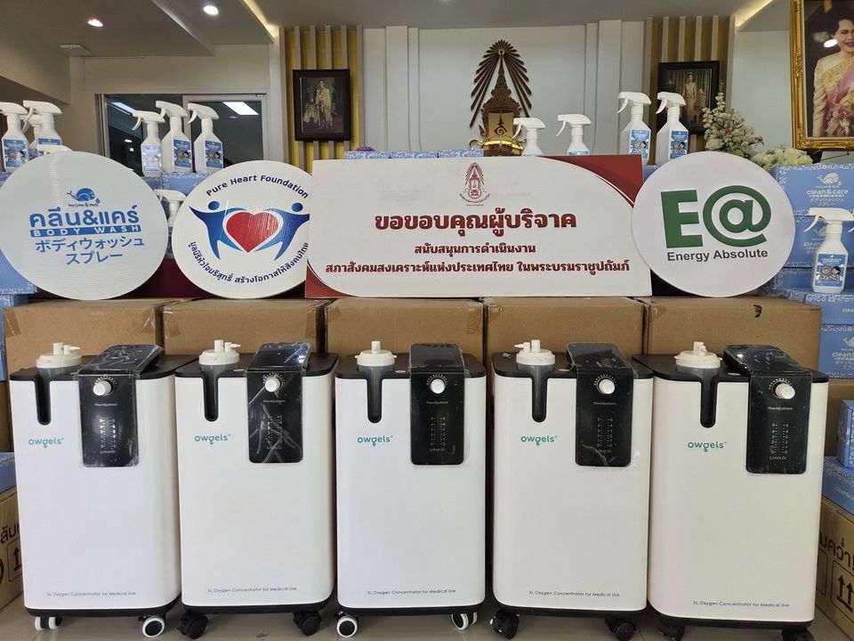 2 กุมภาพันธ์ 2569 นางเธียรรัตน์ นะวะมะวัฒน์ ประธานมูลนิธิหัวใจบริสุทธิ์ พร้อมด้วยทีมงาน จากบริษัท พลังงานบริสุทธิ์ จำกัด (มหาชน) และ บริษัท มัมแอนด์มี แคร์ จำกัด ร่วมกันมอบเครื่องผลิตออกซิเจน จำนวน 10 เครื่อง มูลค่ากว่า 179,000 บาท ผ่านโครงการ “น้ำพระทัยพระราชทาน” ให้แก่สภาสังคมสงเคราะห์แห่งประเทศไทย ในพระบรมราชูปถัมภ์ เพื่อนำไปกระจายยังสถานพยาบาลต่าง ๆ ทั่วประเทศ ให้ผู้ป่วยที่ประสบปัญหาด้านระบบทางเดินหายใจสามารถเข้าถึงการช่วยเหลือได้อย่างทั่วถึง