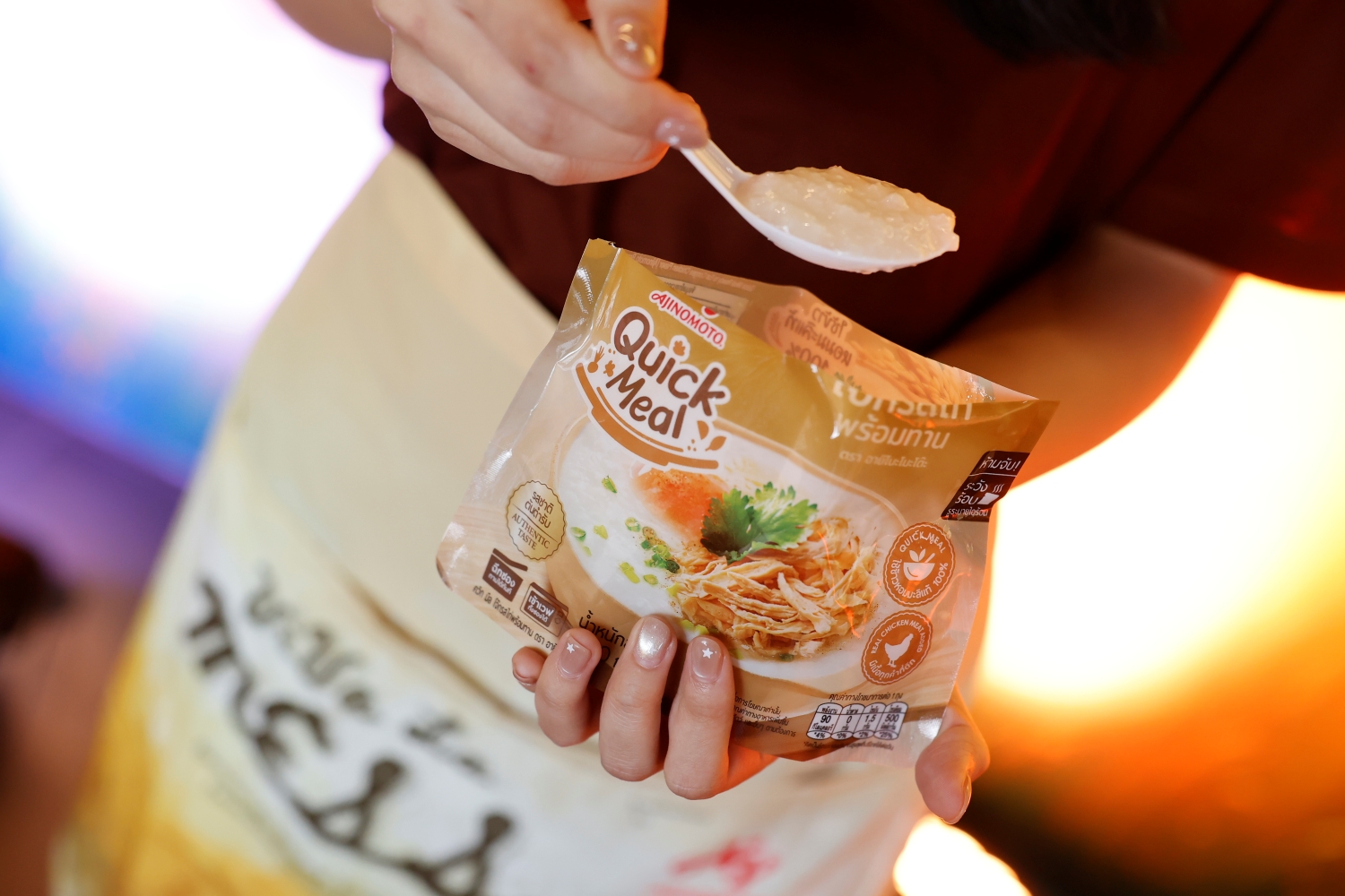 เบญจพล ลิมพลญาณ ผู้จัดการฝ่ายสินค้าสุขภาพและโภชนาการ บริษัท อายิโนะโมะโต๊ะ (ประเทศไทย) จำกัด กล่าวว่า “อายิโนะโมะโต๊ะ ควิก มีล เชื่อว่า ความอร่อย คือจุดเริ่มต้นของความรู้สึกดี และเป็นวิธีง่ายที่สุดในการดูแลตัวเอง ในวันที่ชีวิตวุ่นวายหรือใจยังไม่พร้อม การได้กินอาหารอุ่น ๆ ที่คุ้นเคย สามารถช่วยปลอบประโลมและคืนสมดุลให้หัวใจได้จริง กิจกรรม ViVa La MESS จะนำเสนอประสบการณ์ที่จับต้องได้ ใกล้ตัว และเชื่อมโยงกับแคมเปญ ‘กินอร่อย ใจก็ดีขึ้น (Eating is a Miracle)’ ที่เราเชื่อว่ามื้ออาหารไม่ใช่แค่การเติมพลังให้ร่างกาย แต่เป็นช่วงเวลาสำคัญในการดูแลหัวใจของตัวเอง กิจกรรมนี้จึงชวนทุกคนมาหยุดพัก โอบกอดความรู้สึกของตัวเอง ผ่าน Comfort Eating ด้วยอาหารที่คุ้นเคย บรรยากาศที่ผ่อนคลาย และช่วงเวลาที่ได้อยู่กับตัวเองอย่างสบายใจ”