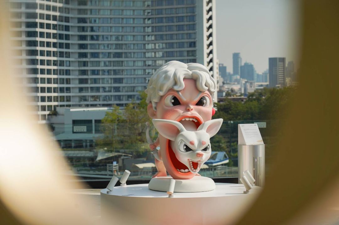 ผลงานของ วันดา ใจมา เปิดสัญญาณสุดท้ายสู่โลกใหม่ที่วัฒนธรรมดั้งเดิมหลอมรวมกับวัฒนธรรมร่วมสมัย เทคโนโลยี และโลกดิจิทัล ประติมากรรมขนาดใหญ่จากคาแรคเตอร์ชุด “ปากหมา” ซึ่งต่อยอดจากผลงานภาพวาด ประติมากรรม และ NFT สะท้อนการตีความอัตลักษณ์ไทยในรูปแบบร่วมสมัย ที่ไม่หยุดอยู่กับความหมายเดิม แต่พร้อมขยายต่อและเคลื่อนไปพร้อมจังหวะของโลกปัจจุบัน