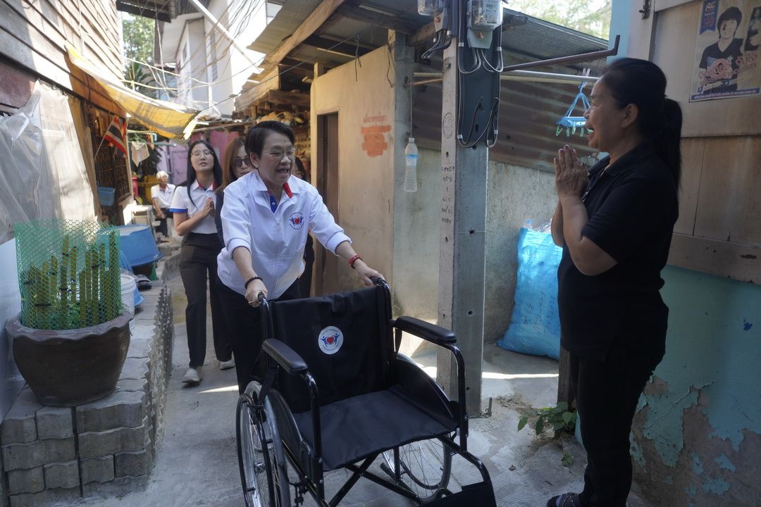 สำหรับรถเข็นวีลแชร์คันแรก มอบให้นางสาวพวงเพ็ชร ปันสา หรือ “ป้าเพชร” อายุ 69 ปี หัวหน้าชุมชน เพื่อนำไปเป็นศูนย์กลางในการบริหารจัดการยืม-คืน ให้แก่ชาวบ้านที่มีความจำเป็น และรถเข็นคันที่ 2 มอบให้นางวันเพ็ญ แม้นทองแดง อายุ 72 ปี ผู้สูงอายุที่มีภาวะสายตาฝ้าฟางและมีข้อจำกัดด้านการเคลื่อนไหว เพื่อช่วยอำนวยความสะดวกในการใช้ชีวิตประจำวัน