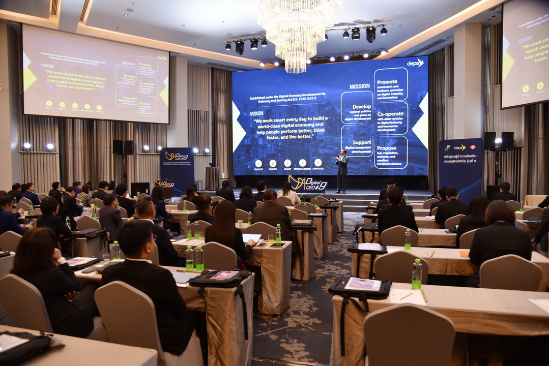 สำนักงานส่งเสริมเศรษฐกิจดิจิทัล (depa) โดย ดร.วาริน รัชนานุสรณ์ รักษาการรองผู้อำนวยการใหญ่ depa ดร.จักกนิตต์ คณานุรักษ์ ผู้อำนวยการฝ่ายส่งเสริมการพัฒนากำลังคนดิจิทัล depa และผศ.(พิเศษ) ดร. อภิสิทธิ์ ฉัตรทนานนท์ ที่ปรึกษาหลักสูตรฯ ร่วมเปิดการอบรมหลักสูตรผู้นำการส่งเสริมเศรษฐกิจดิจิทัล (Digital CEO) รุ่นที่ 9 อย่างเป็นทางการ สานต่อภารกิจการมุ่งพัฒนาผู้บริหารระดับสูง ให้มีศักยภาพด้านดิจิทัลและความพร้อมในการนำเทคโนโลยีสมัยใหม่ไปสู่การปรับเปลี่ยนองค์กรในทุกมิติ เพื่อขับเคลื่อนสังคมและเศรษฐกิจของประเทศด้วยเทคโนโลยีดิจิทัล ณ ห้องแกรนด์บอลรูม โรงแรมเอส 31 สุขุมวิท เมื่อเร็วๆนี้
