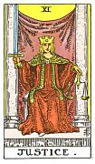 อิทธิพลของไพ่ยุติธรรม (Justice) คุณจะเครียดปวดหัวจัดเพราะโดนทวงถามหนี้สิน เหตุเพราะไปค้ำประกันคนอื่นเขา และคนทำงานส่วนตัวเจรจากับลูกค้าสำเร็จ ด้านความรักคนโสดจะพบรักใหม่อย่างไม่คาดฝัน อย่าเร่งรีบผลีผลามในการคบหา ด้านการงานแม้ว่าจะมีผลงานเด่นเป็นที่พอใจของเจ้านาย แต่ด้วยคำพูดของเราจะทำให้มีปัญหากับเพื่อนร่วมงาน และ คนที่มีกิจการส่วนตัวให้ระวังข้อสัญญาจะเสียเปรียบคนอื่น ควรทำบุญไหว้บูชาท้าวเวสสุวรรณเพื่อเสริมดวงชะตาตนเอง