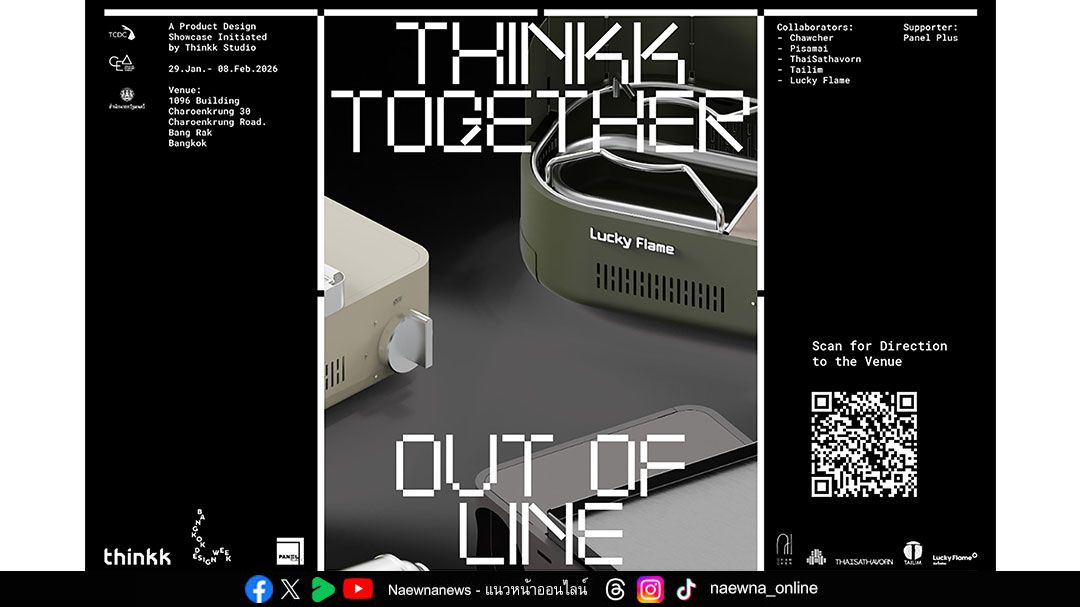 โดย THINKK Studio ได้นำผลิตภัณฑ์ Lucky Flame “เตาแก๊สปิคนิค OOF (Out Of Flame)” มีแนวคิดพัฒนาต่อยอดมาจากเตาแก๊สเอาท์ดอร์ เข้าร่วมจัดแสดงในคอลเลกชัน “THINKK TOGETHER 4: Out of Line” โครงการความร่วมมือระหว่างทีมออกแบบ THINKK Studio กับ 5 แบรนด์ไทยชั้นนำ เพื่อเปิดมุมมองการออกแบบนอกกรอบ สะท้อนแนวคิดการสร้างสรรค์ที่ตั้งต้นจากปัญหาจริงของผู้ผลิต และพัฒนาสู่ความเป็นไปได้ใหม่ทางธุรกิจและการใช้งาน Out Of Line คือการหลุดจากเส้นทางเดิม บางครั้งคือความผิดพลาด บางครั้งคือโอกาสที่กล้าเดินบนเส้นทางใหม่ นับเป็นนิทรรศการที่ชวนทุกคนร่วมหาความหมายของการออกแบบ ในมิติที่ไม่ใช่แค่เพื่อความสวยงาม แต่อาจขยับบางสิ่งให้เปลี่ยนไป สู่โอกาสใหม่ที่ท้าทายและสำคัญกว่าเดิม