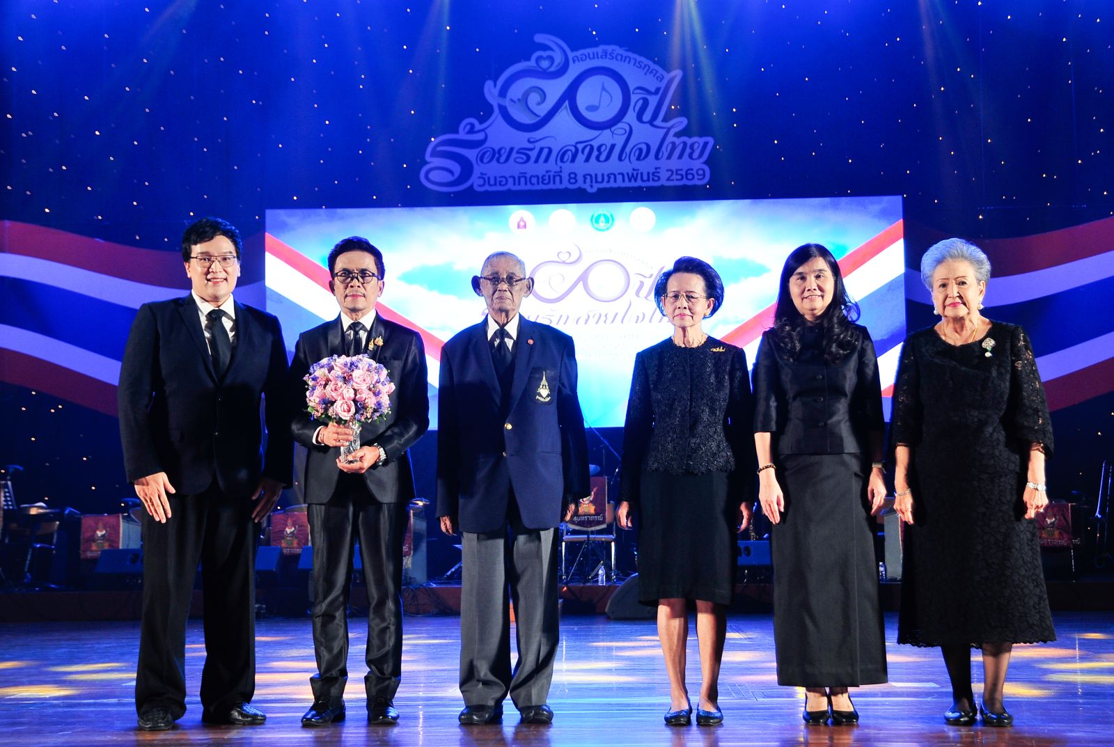 สมเด็จพระกนิษฐาธิราชเจ้า กรมสมเด็จพระเทพรัตนราชสุดา ฯ สยามบรมราชกุมารี องค์ประธานมูลนิธิสายใจไทยฯ ทรงพระกรุณาโปรดฯ ให้ ม.ล.ประทิ่นทิพย์ นาครทรรพ ผจก.มูลนิธิสายใจไทยฯ เป็นผู้แทนพระองค์อัญเชิญแจกันดอกไม้พระราชทานแก่ ดร.สง่า ดามาพงษ์ ประธานจัดงานคอนเสิร์ตฯ โดยมี พล.ท.นพ.ธำรงรัตน์ แก้วกาญจน์ รอง ปธ.มูลนิธิสายใจไทยฯ, ยุถิกา อิศรางกูร ณ อยุธยา อธิบดีกรมส่งเสริมวัฒนธรรม, อติพร สุนทรสนาน เสนะวงศ์ เลขาธิการมูลนิธิสุนทราภรณ์ฯ และ ปรัสถา สิโรรส นายก สอก. ร่วมถ่ายภาพ