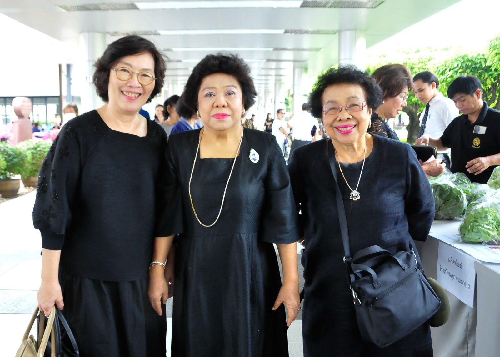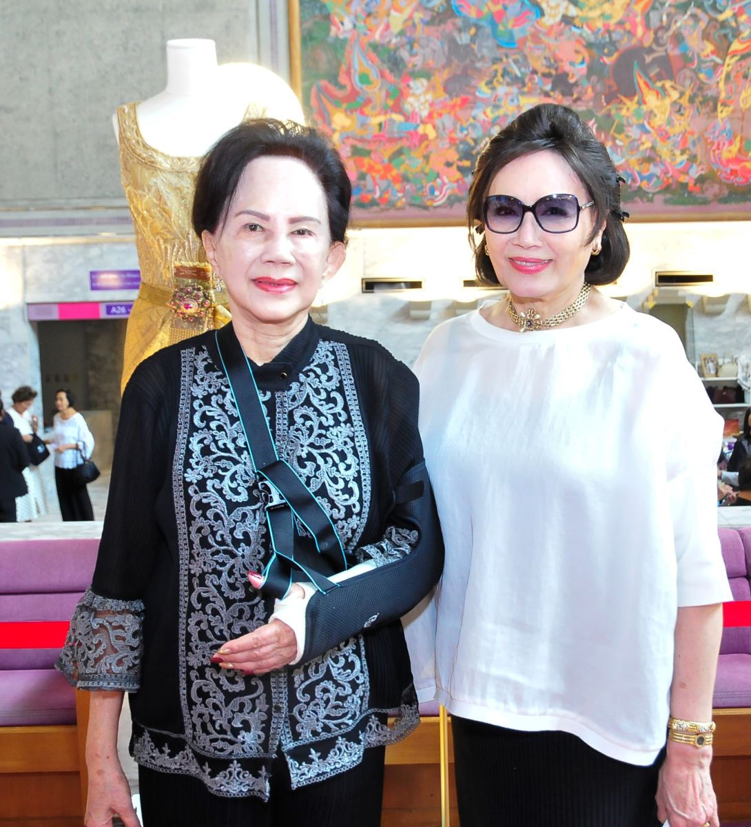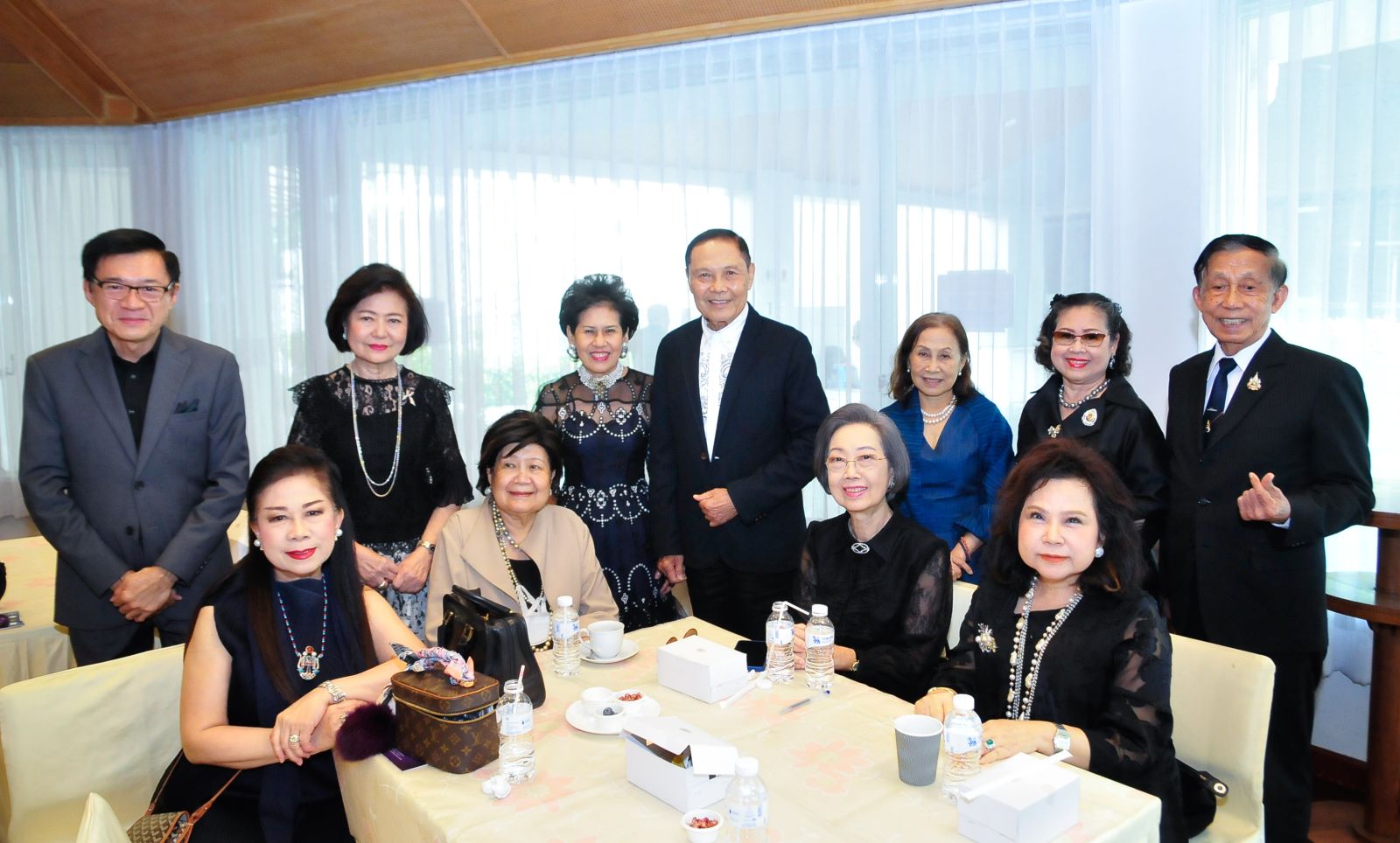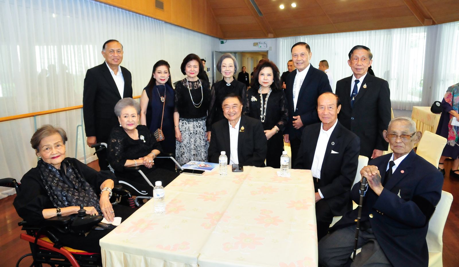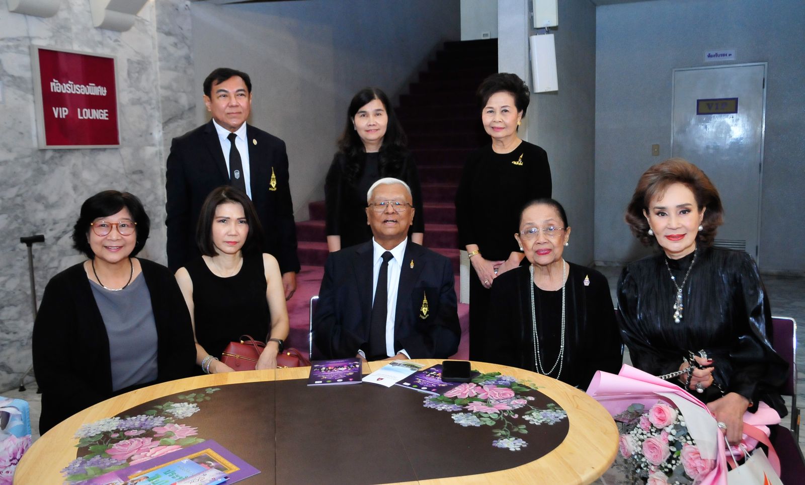 องคมนตรี จิรายุ-ท่านผู้หญิงอรนุช อิศรางกูร ณ อยุธยา พร้อมด้วย บุศรา กาญจนาลัย, อรวรรณ คราประยูร, รุ่งทิวา ศรีวรกุล, แถวยืน อนุชา เสมารัตน์, ยุถิกา อิศรางกูรฯ และ พวงทอง อานันทนะสุวงศ์