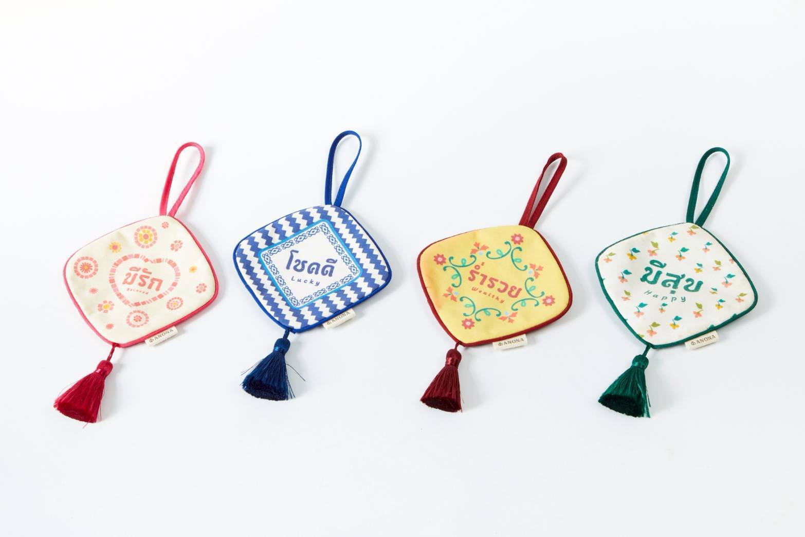 “ANONA” ผลิตภัณฑ์เครื่องหอมอโรม่าที่เน้นคุณภาพเยี่ยมและดีไซน์สวย มาพร้อมถุงหอมมงคลที่ได้แรงบันดาลใจจากลวดลายกระเบื้องวัดดัง พร้อมคำอวยพรทั้ง ลายมีสุข แรงบันดาลใจจากวัดอรุณราชวราราม, ลายร่ำรวย แรงบันดาลใจจากวัดราชบพิตร, ลายมีรัก แรงบันดาลใจจากวัดผาซ่อนแก้ว เพชรบูรณ์ และ ลายโชคดี แรงบันดาลใจจากวัดปากน้ำแขมหนู จันทบุรี พร้อมกลิ่นหอมให้เลือก 3 กลิ่น เฌอ, แจ่ม, เคลิ้ม เหมาะอย่างยิ่งที่จะมอบให้กันเป็นของขวัญ