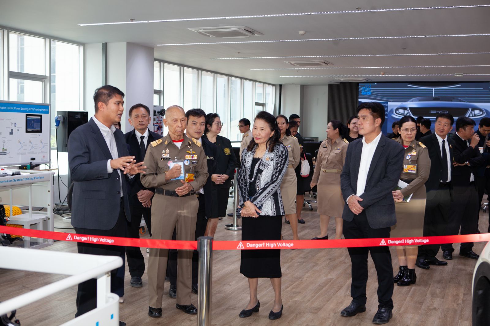 จากนั้น พลอากาศเอก สมคิด สุขบาง กรมวังผู้ใหญ่ประจำพระองค์ สมเด็จพระเจ้าลูกเธอ เจ้าฟ้าพัชรกิติยาภา นเรนทิราเทพยวดี กรมหลวงราชสาริณีสิริพัชร มหาวัชรราชธิดา พร้อมคณะ ได้เยี่ยมชมศูนย์ปฏิบัติการต่าง ๆ ของอุทยานเทคโนโลยี มหาวิทยาลัยเทคโนโลยีพระจอมเกล้าพระนครเหนือ ดังนี้ ศูนย์เทคโนโลยีอากาศยานและการป้องกันประเทศ ศูนย์ปฏิบัติการระบบอัตโนมัติและหุ่นยนต์ ศูนย์ปฏิบัติการเทคโนโลยีและนวัตกรรมยานยนต์สมัยใหม่ ศูนย์ปฏิบัติการเทคโนโลยีและนวัตกรรมระบบราง ศูนย์เทคโนโลยีเรดาร์ ศูนย์ปฏิบัติการเทคโนโลยีและนวัตกรรมระบบราง และสถาบันเทคโนโลยีอวกาศนานาชาติเพื่อการพัฒนาเศรษฐกิจ โดยมหาวิทยาลัยเทคโนโลยีพระจอมเกล้าพระนครเหนือ มีความยินดีที่จะลงนามความร่วมมือทางวิชาการในการจัดฝึกอบรมอาชีพช่างอุตสาหกรรม สาขา ขาดแคลนให้กับเด็กและเยาวชนในโครงการบูรณาการเครือข่ายหน่วยงานการปฎิบัติ และแก้ไขบำบัดฟื้นฟูเด็กและเยาวชนที่เข้าสู่กระบวนการยุติธรรมในฐานะผู้กระทำผิดและผู้เสียหายด้วยความเสมอภาคเพื่อให้สามารถประกอบอาชีพที่มั่นคงในสถานประกอบการธุรกิจอุตสาหกรรมต่าง ๆ และมีส่วนร่วมในการช่วยพัฒนาเศรษฐกิจและสังคมของประเทศชาติต่อไป
