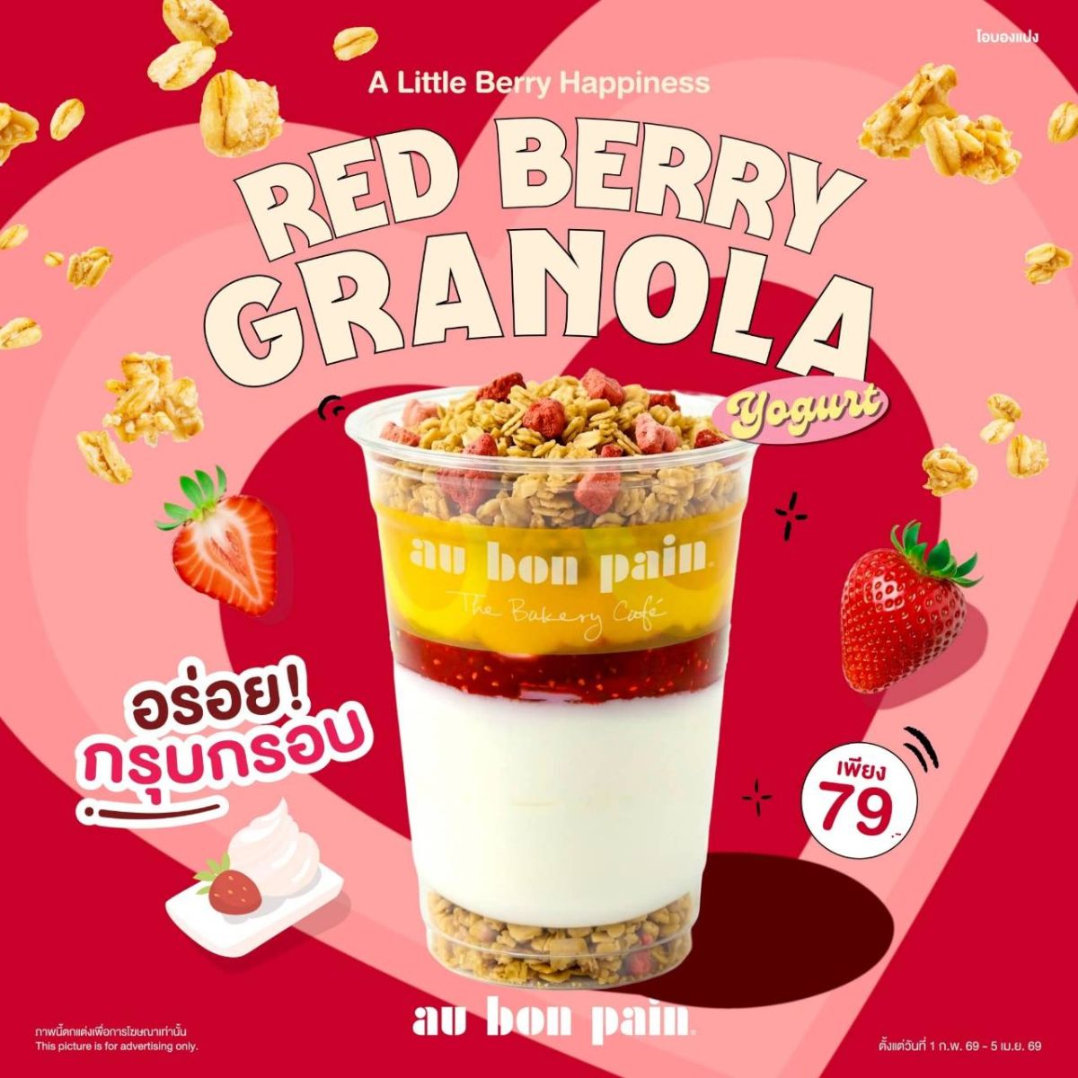 หรือจะเปลี่ยนบรรยากาศมาลองเบเกอรี่หอมกรุ่นสัญชาติอเมริกันจาก Au Bon Pain ชั้น G คาเฟ่ที่รวมความอร่อยของเบเกอรี่และขนมอบไว้ให้เลือกหลากหลาย ตั้งแต่ เบเกิลครีมชีสเนื้อนุ่มหนึบ ครัวซองต์อัลมอนด์หอมกรอบ แดนิชบลูเบอร์รี่ ไปจนถึง มัฟฟินดับเบิลช็อกโกแลตชิพ ที่ถูกใจสายหวาน เมื่อจับคู่กับเครื่องดื่มแก้วโปรด ไม่ว่าจะเป็นกาแฟหอม ๆ ชามัทฉะ หรือสมูทตี้รสสดชื่น ก็ยิ่งช่วยเติมบรรยากาศให้ช่วงเวลานี้เพลิดเพลินมากยิ่งขึ้น และในช่วงเทศกาลแห่งความรักทางร้านมีเมนูพิเศษที่สายเบอร์รี่ไม่ควรพลาด อย่าง Strawberry Cubic Cup สตรอว์เบอร์รีลูกโต เสิร์ฟพร้อมเยลลี่แดงเนื้อนุ่ม ท็อปด้วยวิปครีมฟู ๆ และซอสสตรอว์เบอร์รีรสเปรี้ยวหวานกำลังดี นอกจากนี้ยังมีเมนูน้องใหม่อย่าง Red Berry Granola Yogurt โยเกิร์ตเนื้อนุ่มละมุน เพิ่มความสดชื่นด้วยเรดเบอร์รี่ และความกรุบกรอบจากกราโนลาในทุกคำ เป็นอีกตัวเลือกอร่อยเบา ๆ ที่ทานได้เพลินสบายท้อง
