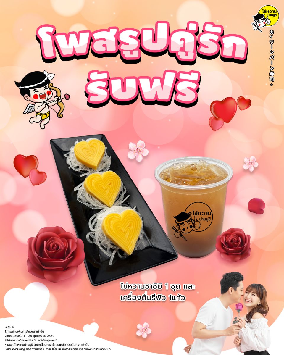 ไข่หวานบ้านซูชิ ต้อนรับเดือนแห่งความรักด้วยการเปิดตัวเมนูใหม่ล่าสุด “Salmon Kiss” เมนูสุดพิเศษที่ตั้งใจรังสรรค์เพื่อมอบประสบการณ์ความอร่อยที่ทั้งสด ละมุน และอบอุ่นในทุกคำ โดดเด่นด้วยแซลมอนคุณภาพดี ผสานความลงตัวในสไตล์ของไข่หวานบ้านซูชิ พร้อมเสิร์ฟให้ทุกคู่รัก ครอบครัว และกลุ่มเพื่อนได้มาร่วมแบ่งปันช่วงเวลาดี ๆ ตั้งแต่วันนี้ถึงสิ้นเดือนนี้เท่านั้น