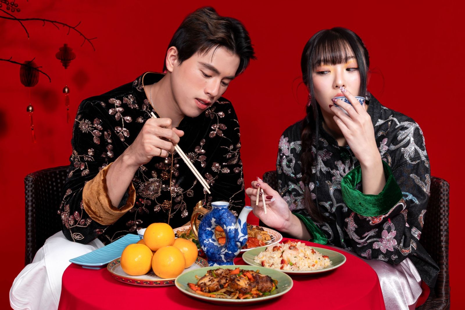 ประเดิมเสริมความปังด้วยการปรับลุคต้อนรับปีม้าทอง ด้วยชุดเสื้อผ้าแฟชั่น ที่ผสมผสานกลิ่นอายความเป็นจีนโมเดิร์น ไม่ว่าจะเป็นเสื้อเบลเซอร์สีเข้มคอจีน ปักลวดลายดอกไม้ด้วยเลื่อมระยิบระยับ สวมแมทช์กับกางเกงสีขาว หรือกระโปรงผ้าซาตินสีชมพู พร้อมเติมพร็อพเครื่องประดับ และพัดจีนเข้าไป ช่วยอัปลุคฉลองตรุษจีนปีนี้ให้ดูพรีเมียมจัดเต็มขึ้นมาทันที พิกัดร้านค้า เบลเซอร์คอจีน – ร้าน Santilisa ชั้น 3 ซอย Nathan 8 และ เสื้อผ้าแฟชั่นจีน – ร้าน CAMILLIA BOUTIQUE ชั้น B ซอย Ginza 7 เมื่อชุดและหน้าผมพร้อมแล้วชวนไปเช็คอิน ถ่ายรูปกันต่อรัวๆ ได้เลย ที่จุดดิสเพลย์สไตล์ตรุษจีนสีแดงมงคลสดใสซึ่งมีทั้งด้านหน้าและด้านในศูนย์การค้า