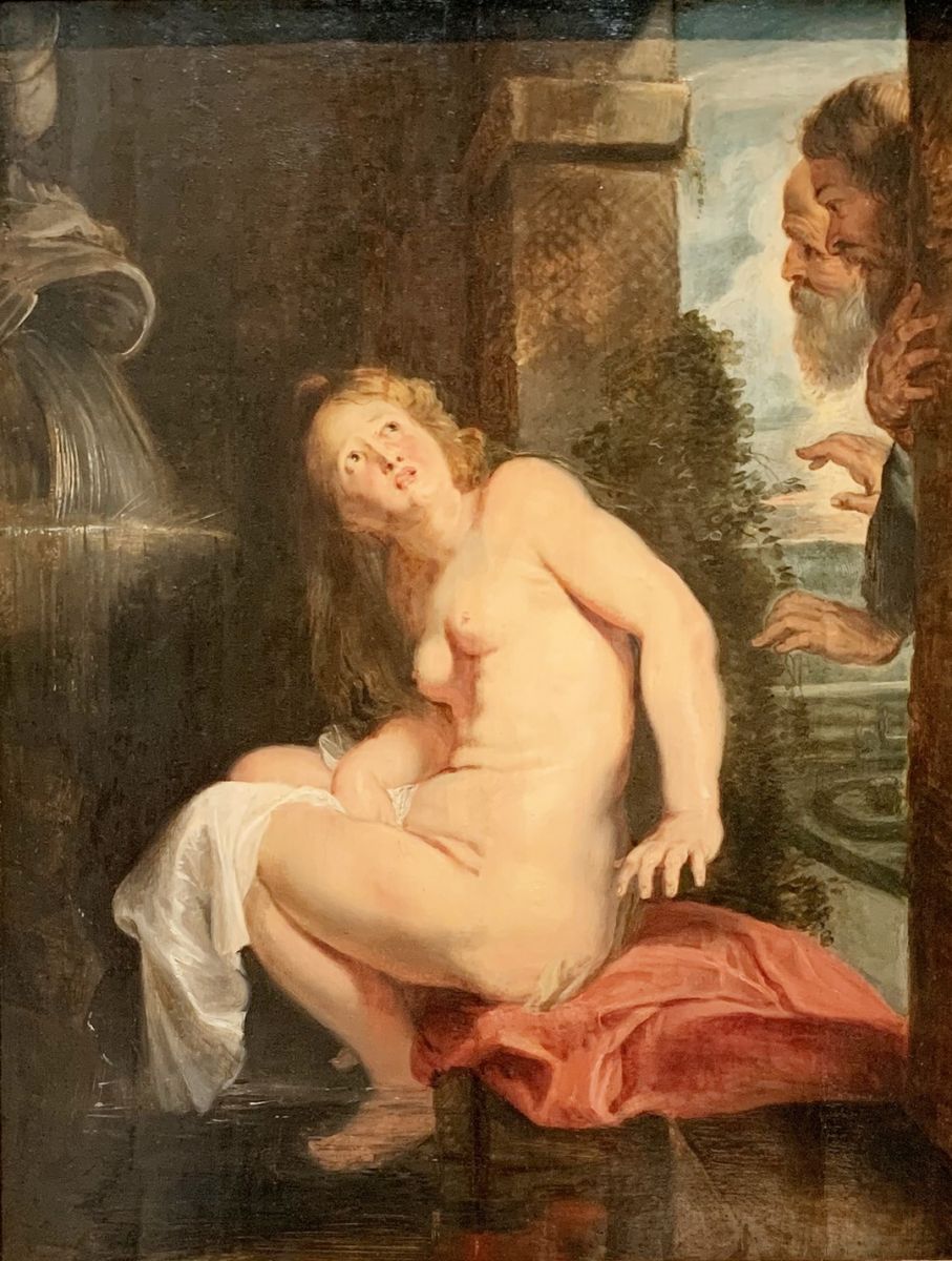 Susanna and the Elders ผลงานจากตอน The Story of Susanna in Babylon ในพระคัมภีร์ไบเบิ้ลที่มีชายชราแอบดู Susanna กำลังอาบน้ำจนทำให้เธอร้องเรียนว่าถูกล่วงละเมิดนี้เป็นผลงานที่ศิลปินได้มีโอกาสรังสรรค์ภาพนู้ดได้โดยไม่เคอะเขิน ภาพ Susanna ที่ค่อนข้างอวบนี้ยังสะท้อนให้เห็นถึงรสนิยมของความสวยงามของสตรีในอดีตที่อวบกว่าปัจจุบันอันเป็นผลมาจากความคิดที่ว่า สตรีที่อวบจะสามารถมีน้ำนมเลี้ยงบุตรให้รอดได้ดีกว่าสตรีที่ผอม The Death of Seneca เป็นเรื่องเกี่ยวกับ Seneca นักปรัชญาและที่ปรึกษาของจักรพรรดิ Nero ที่ได้รับการกล่าวขานว่ามีความอดทนสูงผู้ถูกเข้าใจผิดจากจักรพรรดิ Nero ว่ามีส่วนร่วมในการลอบปลงพระชนม์จึงถูกจักรพรรดิ Nero สั่งให้ฆ่าตัวตายด้วยการกรีดเลือดจากแขนตัวเองซึ่งทำให้เลือดออกอย่างช้า ๆ และตายอย่างทรมาน นักท่องเที่ยวจะเห็นว่าสีหน้าของ Seneca ดูไม่สะทกสะท้านและเต็มไปด้วยความมุ่งมั่นสะท้อนถึงความมั่นใจในตัวเองว่าไม่ได้ทำผิด และมีความทระนงอย่างยิ่งยวด