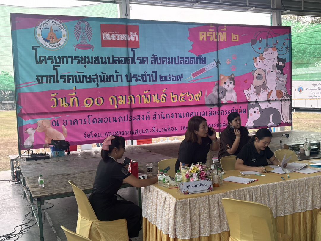 และเมื่อวันที่ 10 กุมภาพันธ์ คณะสัตวแพทย์ฯ จุฬาฯ หนังสือพิมพ์แนวหน้า และเทศบาลเมืองกระทุ่มล้ม นครปฐม ได้ร่วมกับทำโครงการชุมชนปลอดโรค สังคมปลอดภัยจากโรคพิษสุนัขบ้า ประจำปี 2569 โดยดำเนินโครงการนี้ต่อเนื่องเป็นปีที่ 2 แล้ว ในปีนี้มีผู้นำหมาและแมวไปรับบริการทำหมันรวม 53 ตัว แบ่งเป็นหมา 10 ตัว แมว 43 ตัว และให้บริการฉีดวัคซีนป้องกันโรคกลัวน้ำ วัคซีนรวม และกำจัดเห็บหมัด รวมทั้งหมด 80 ตัว