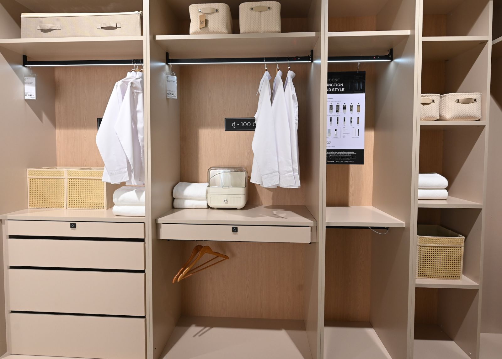 ไม่ใช่แค่สวย แต่ PI WARDROBE ยังอัดแน่นด้วยเทคโนโลยีเพื่อความสะดวกสบายและความปลอดภัย ด้วย ความสูงตู้ถึง 240 ซม. : เพื่อการจัดเก็บที่สูงสุด และดูเนียนไปกับห้องเหมือนงานบิลต์อิน Smart Lighting : ราวแขวนผ้าอลูมิเนียมสีดำพรีเมี่ยม มาพร้อมไฟ LED ระบบ Motion Sensor เปิด-ปิดอัตโนมัติเมื่อใช้งาน High Security : ลิ้นชักนิรภัยระบบ Finger Scan Lock ปกป้องของมีค่า เปิด-ปิดสะดวกด้วยสแกนนิ้วมือ *หมดปัญหากุญแจหาย Smooth Operation : ระบบ Soft-Close ทั้งหน้าบานและลิ้นชัก ช่วยลดเสียงรบกวนและยืดอายุการใช้งาน