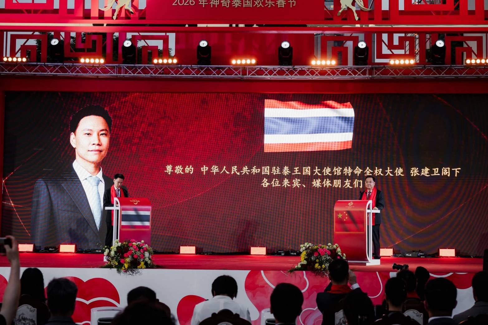 พิธีเปิดงานที่จัดขึ้นอย่างยิ่งใหญ่ เมื่อวันที่ 14 กุมภาพันธ์ 2569 ได้รับเกียรติจาก อรรถกร ศิริลัทธยากร รัฐมนตรีว่าการกระทรวงการท่องเที่ยวและกีฬา พร้อมด้วย จาง เจี้ยนเว่ย เอกอัครราชทูตสาธารณรัฐประชาชนจีนประจำประเทศไทย ร่วมกล่าวคำอวยพรเนื่องในวันตรุษจีน โดยมี ฐาปนีย์ เกียรติไพบูลย์ ผู้ว่าการการท่องเที่ยวแห่งประเทศไทย, ชฎาทิพ จูตระกูล ประธานเจ้าหน้าที่บริหาร กลุ่มบริษัทสยามพิวรรธน์ และ มยุรี ชัยพรหมประสิทธิ์ กรรมการผู้จัดการใหญ่ สายองค์กรสัมพันธ์และสื่อสารองค์กร บริษัท สยามพิวรรธน์ จำกัด ร่วมงานท่ามกลางบรรยากาศที่จัดขึ้นอย่างยิ่งใหญ่ ตื่นตาตื่นใจด้วยการแสดงชุดพิเศษ “ระบำต้อนรับตรุษจีน” จากประเทศจีน และ “ระบำอาชาศรีสยาม” จากประเทศไทย ที่สื่อถึงความสัมพันธ์อันแน่นแฟ้นระหว่างสองประเทศ รวมถึงการแสดงศิลปวัฒนธรรมจีนหาชมยาก 4 คณะ ได้แก่ กรุงปักกิ่ง นครฉงซิ่ง มณฑลเหอหนาน และมณฑลฝูเจี้ยน