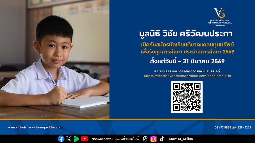 มูลนิธิ วิชัย ศรีวัฒนประภา มอบโอกาสทางการศึกษา เปิดรับสมัครนักเรียนที่ต้องการเรียนต่อชั้นมัธยมศึกษาปีที่ 1, มัธยมศึกษาปีที่ 4 หรือ ประกาศนียบัตรวิชาชีพปีที่ 1 มีความประพฤติดีแต่ขาดแคลนทุนทรัพย์ เพื่อรับทุนการศึกษาประจำปี 2569 โดยผู้ที่สนใจสามารถดาวน์โหลดรายละเอียดโครงการและใบสมัครเพื่อขอรับทุนการศึกษาได้ที่ https://vichaisrivaddhanaprabha.com/scholarship-th/