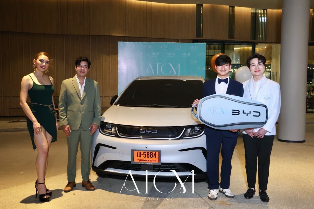 ในโอกาสพิเศษนี้ นายแพทย์อนุพงษ์ ไพรวิจิตร หรือ “หมออะตอม” แพทย์ผู้บริหาร และรัฐภูมิ วัลลิกุล ผู้บริหาร บริษัท อะตอม จำกัด (Atom Clinic) ได้มอบรางวัลรถยนต์ไฟฟ้า BYD มูลค่า 499,900 บาท ให้กับผู้โชคดี ได้แก่มหัทธนะกิตติ์ ประเกาทัน ผู้ที่ใช้บริการจากอะตอมคลินิก สาขาบุรีรัมย์ เพื่อเป็นสัญลักษณ์แห่งคำขอบคุณ และความผูกพันที่มีต่อลูกค้าคนสำคัญของอะตอมคลินิก