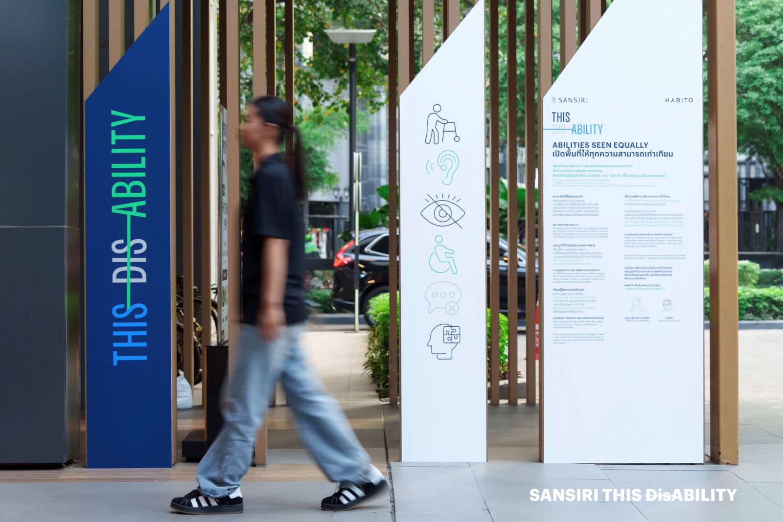 แสนสิริจึงนำแนวคิดนี้มาต่อยอดเพื่อสร้างระบบนิเวศที่เอื้อต่อการทำงานของผู้พิการ ส่งเสริมโอกาสในการประกอบอาชีพที่เท่าเทียมและมีเกียรติในสังคมไทย ท่ามกลางสถานการณ์ปัจจุบันที่พบว่าคนพิการในประเทศไทยยังคงเผชิญกับข้อจำกัดในการเข้าถึงโอกาสการจ้างงาน โดยเฉพาะในภาคธุรกิจที่ความเข้าใจในศักยภาพที่หลากหลายยังคงเป็นช่องว่างสำคัญ ซึ่งนอกเหนือจากการเปิดรับพนักงานผู้พิการเข้ามาปฏิบัติงานภายในองค์กรแล้ว แคมเปญนี้แสนสิริได้ต่อยอดการสร้างโอกาสจากภายในองค์กร ขยายผลสู่ Sansiri Community อย่าง Habito Mall (ฮาบิโตะ มอลล์) ศูนย์กลางไลฟ์สไตล์ใน T77 Community เพื่อให้เป็นโมเดลต้นแบบของสังคมที่พร้อมเปิดโอกาสและโอบรับความหลากหลาย